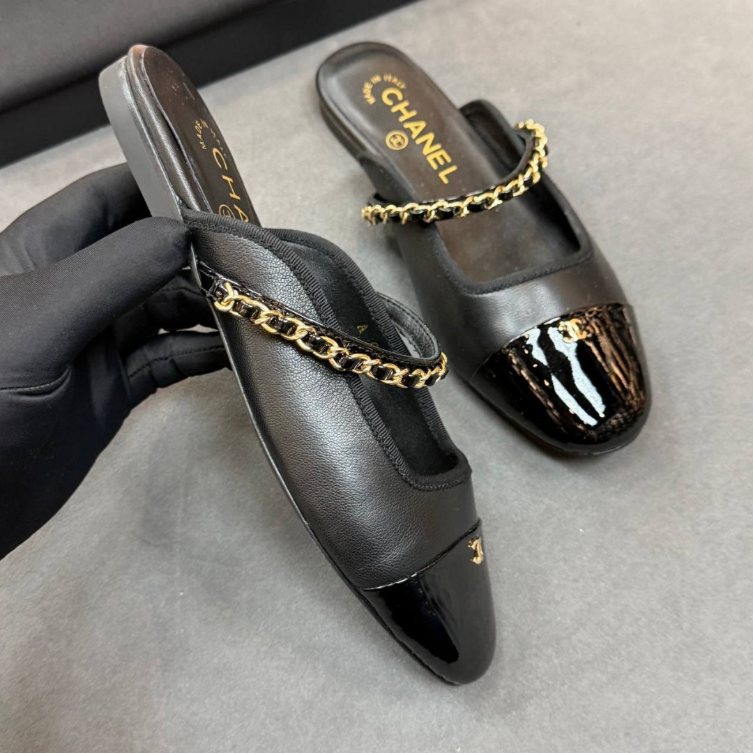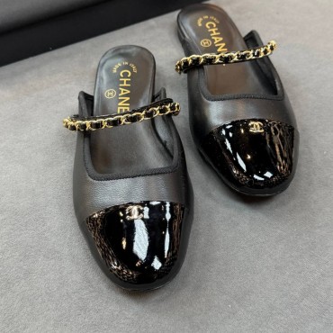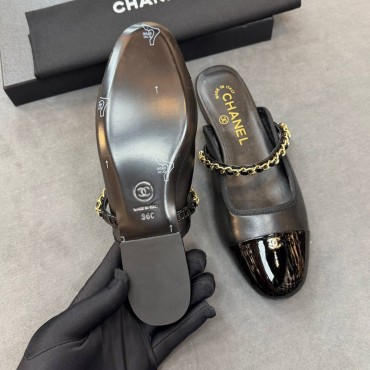Женские кожаные мюли Chanel черные с лакированным носом 2026