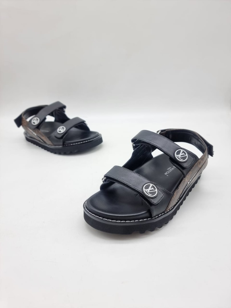 Женские кожаные сандалии Louis Vuitton 2023-2024 черные с коричневым