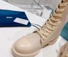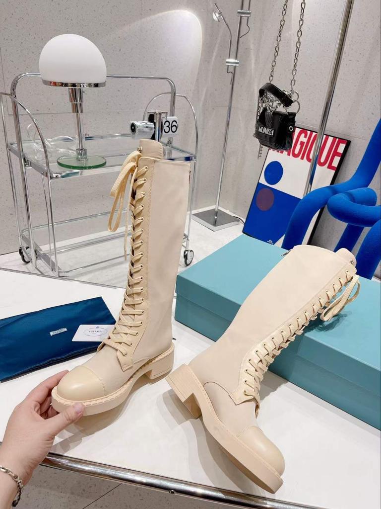 Женские комбинированные сапоги Prada 2023 бежевые с молнией сзади