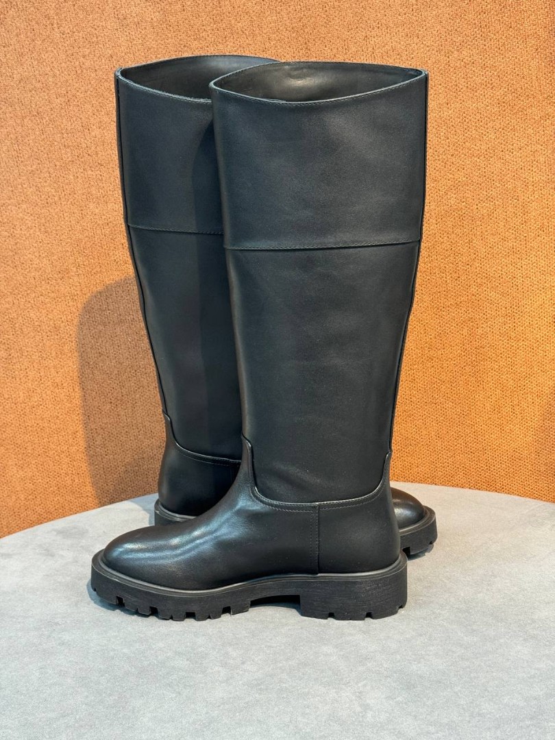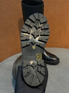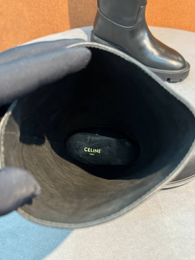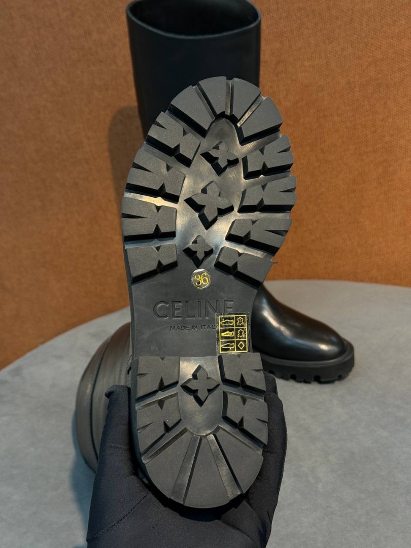 Женские кожаные сапоги Celine черные на тракторной подошве 2025