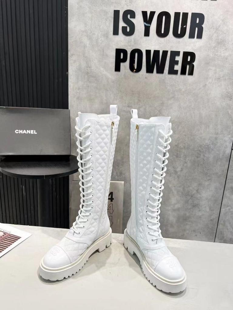 Женские кожаные сапоги Chanel 2023 белые со шнурками