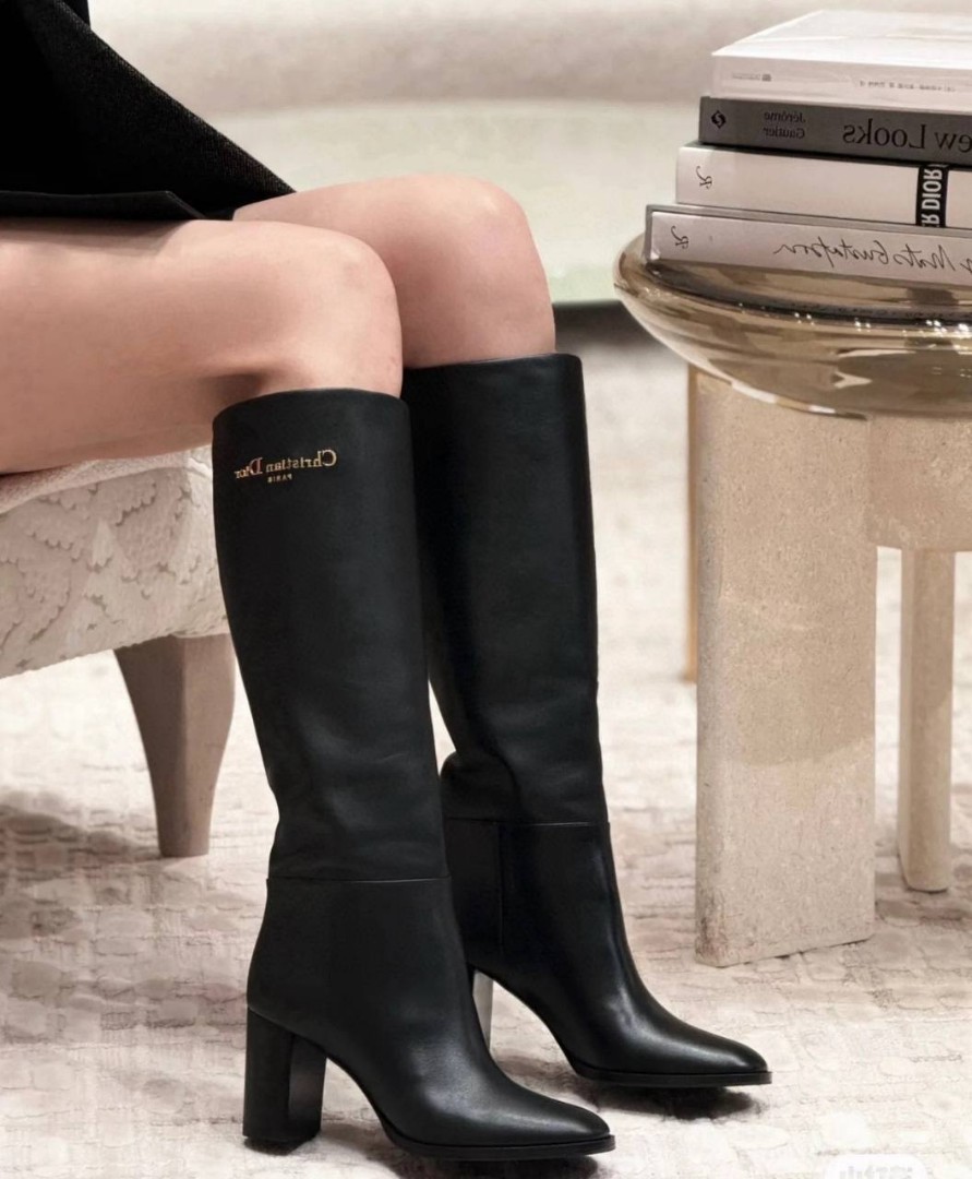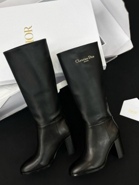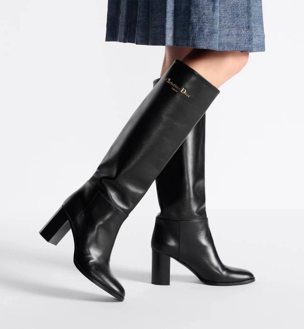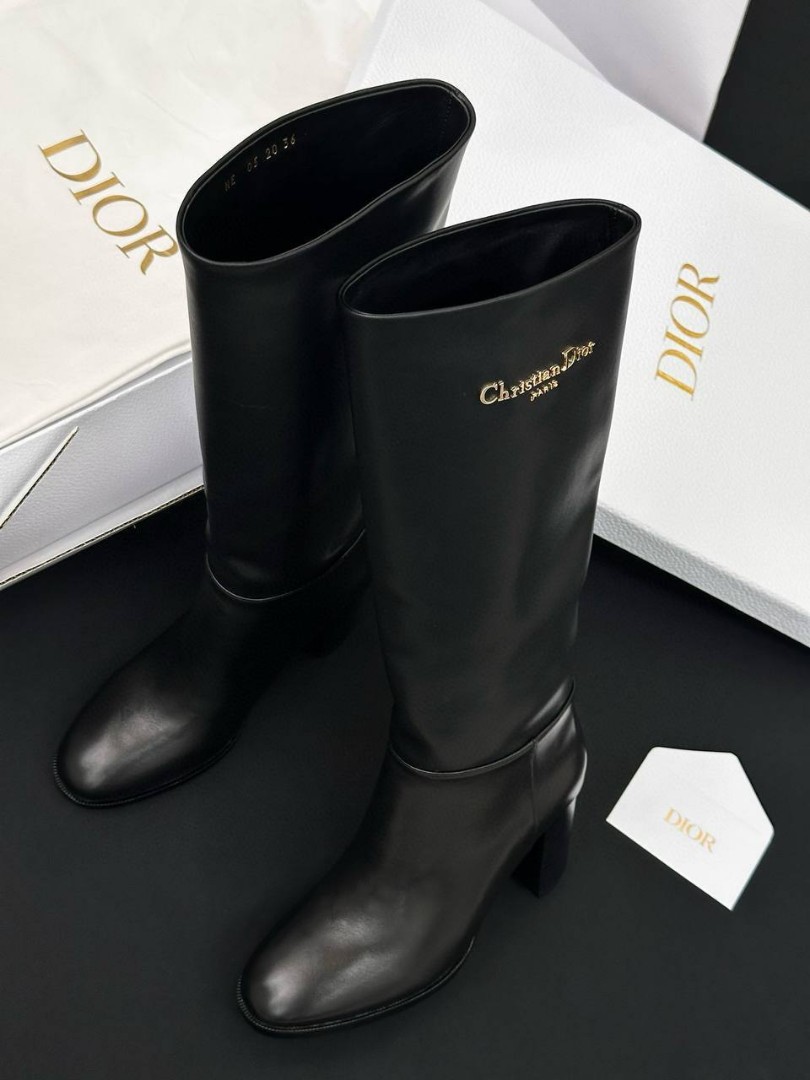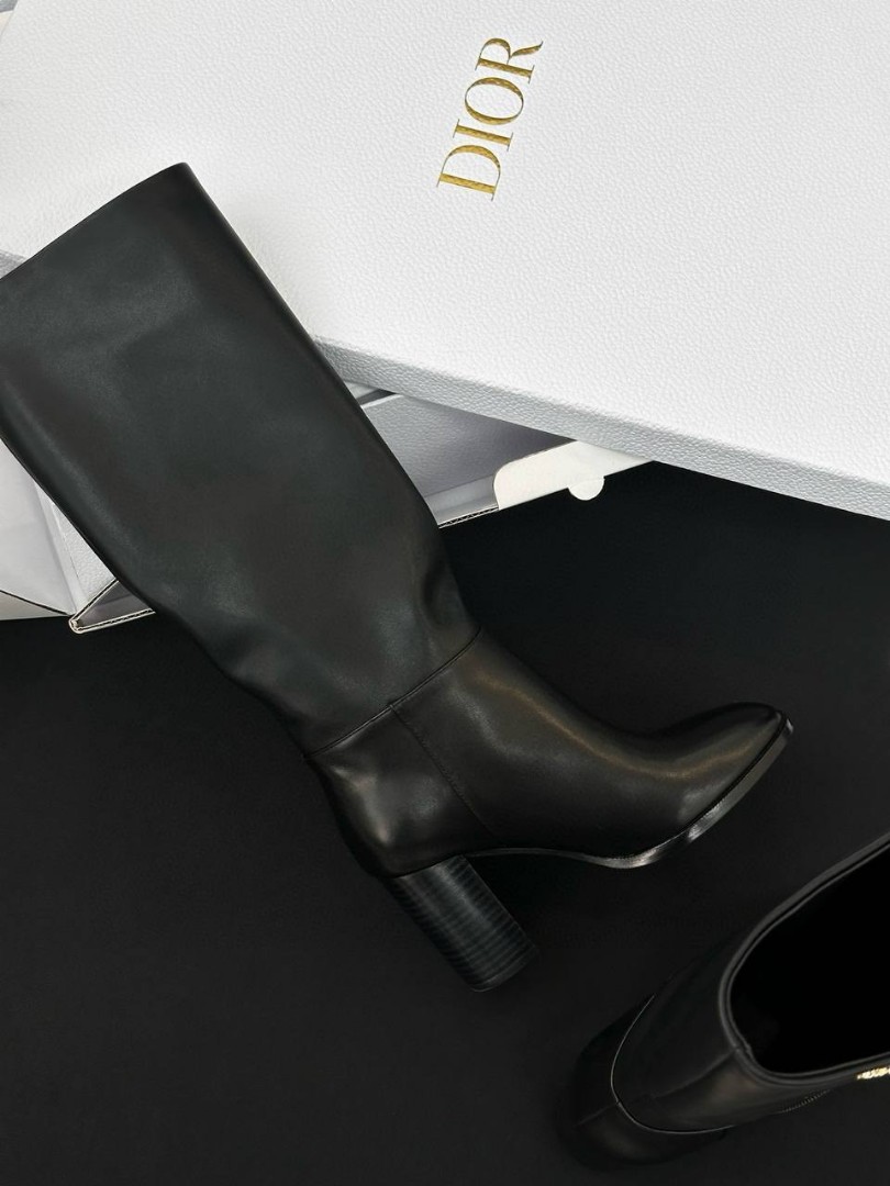 Женские кожаные сапоги Christian Dior D-Town черные каблук 8 см 2025