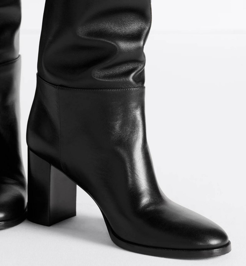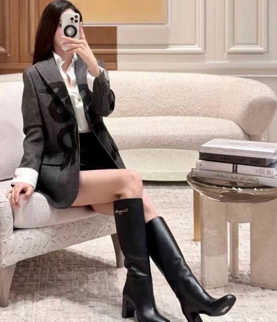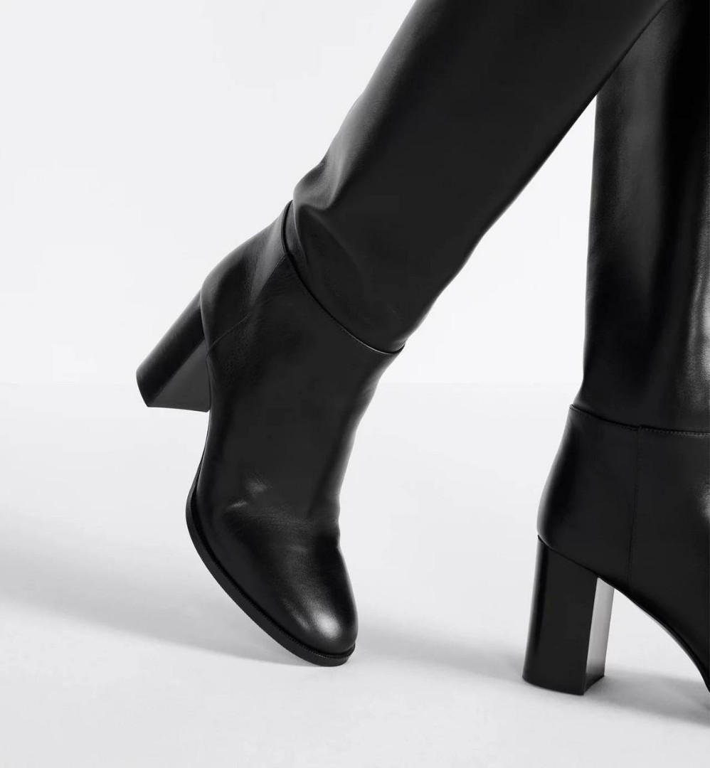 Женские кожаные сапоги Christian Dior D-Town черные каблук 8 см 2025