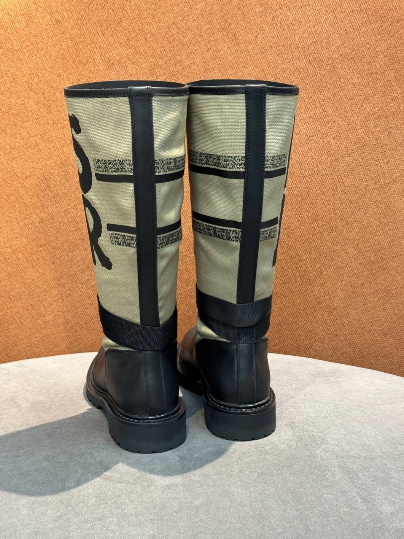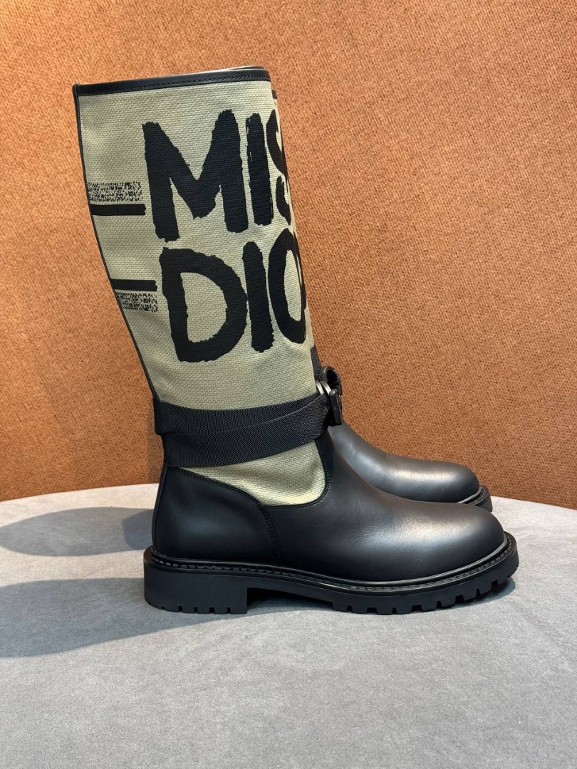 Женские кожаные сапоги Christian Dior Miss Dior черные с бежевым 2025