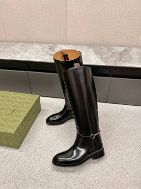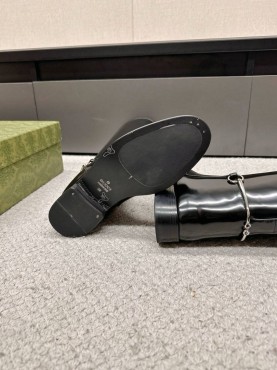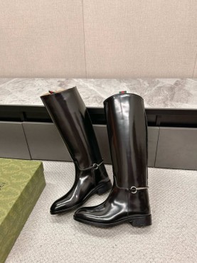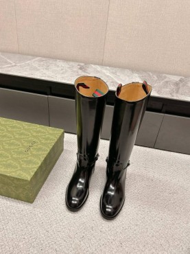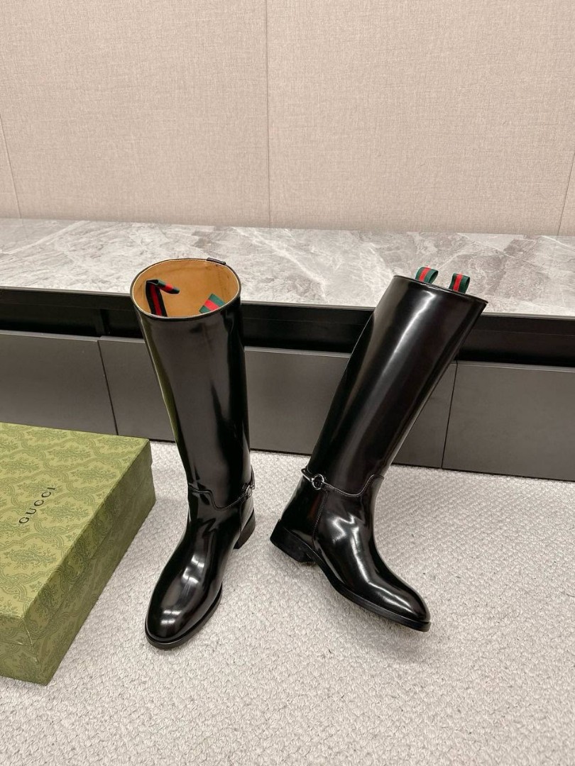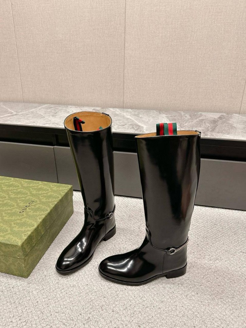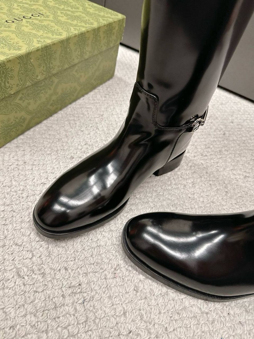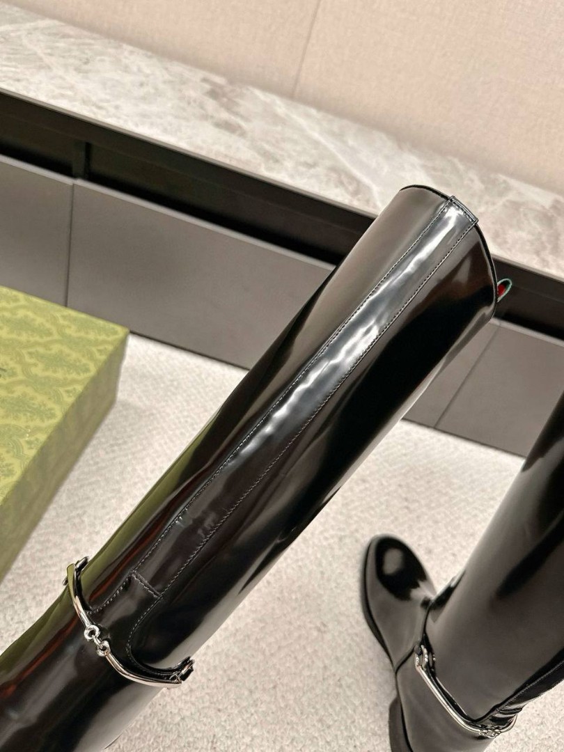 Женские кожаные сапоги Gucci черные глянцевые 2025