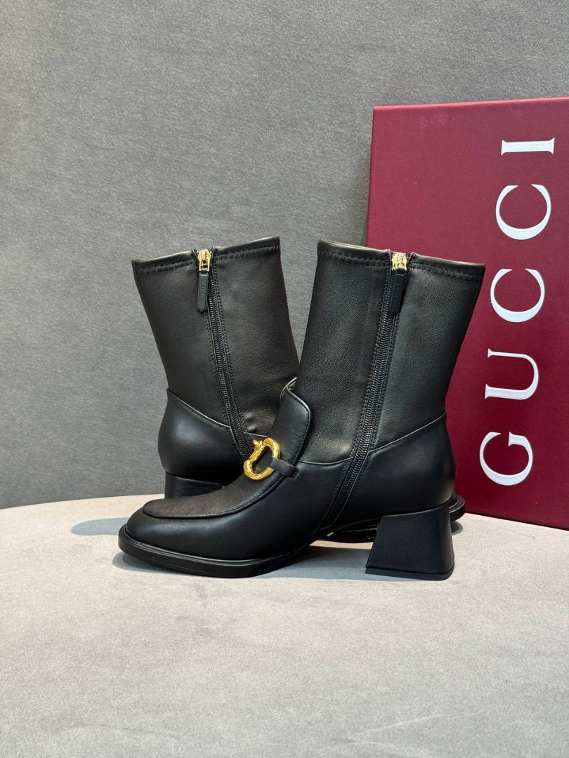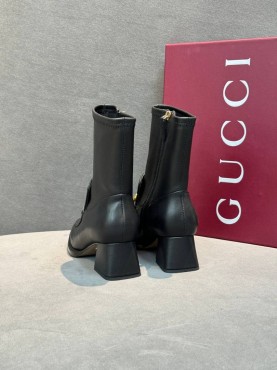 Женские кожаные сапоги Gucci черные каблук 5 см 2025