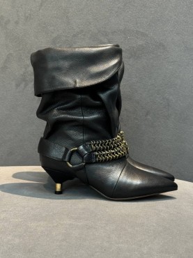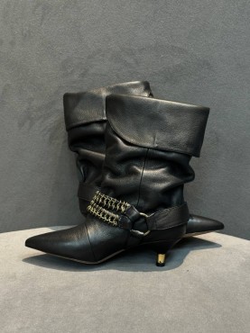 Женские кожаные сапоги Isabel Marant черные с цепями 2025
