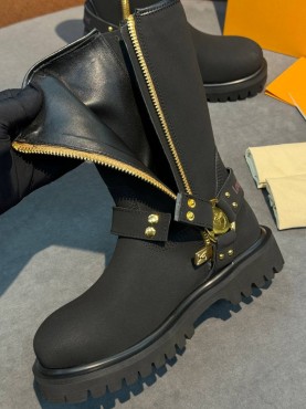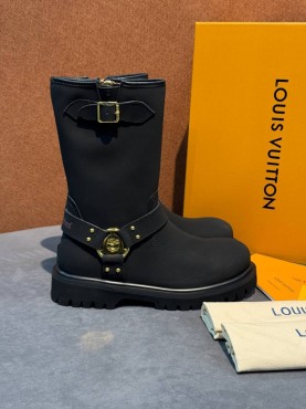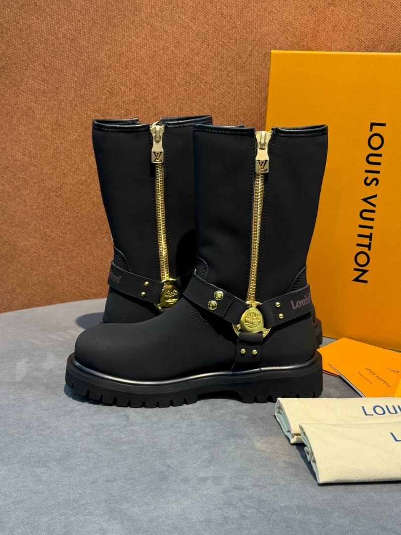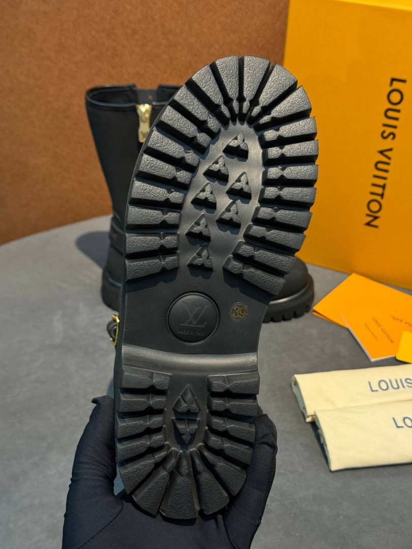 Женские кожаные сапоги Louis Vuitton & Timberland черные матовые 2025