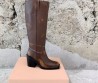 Женские кожаные сапоги Miu Miu 2023 коричневые с бежевым