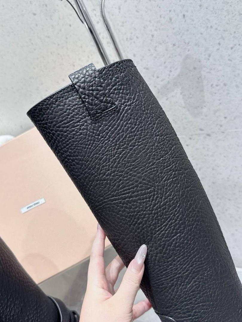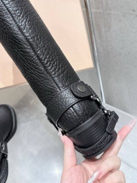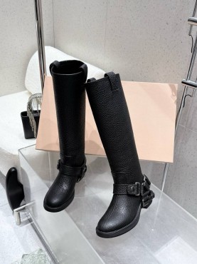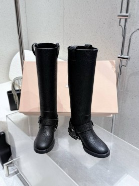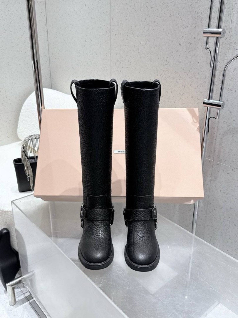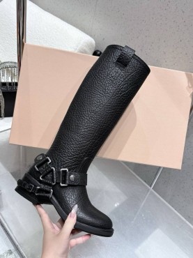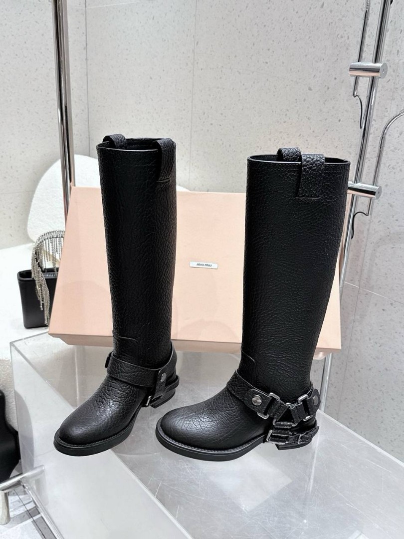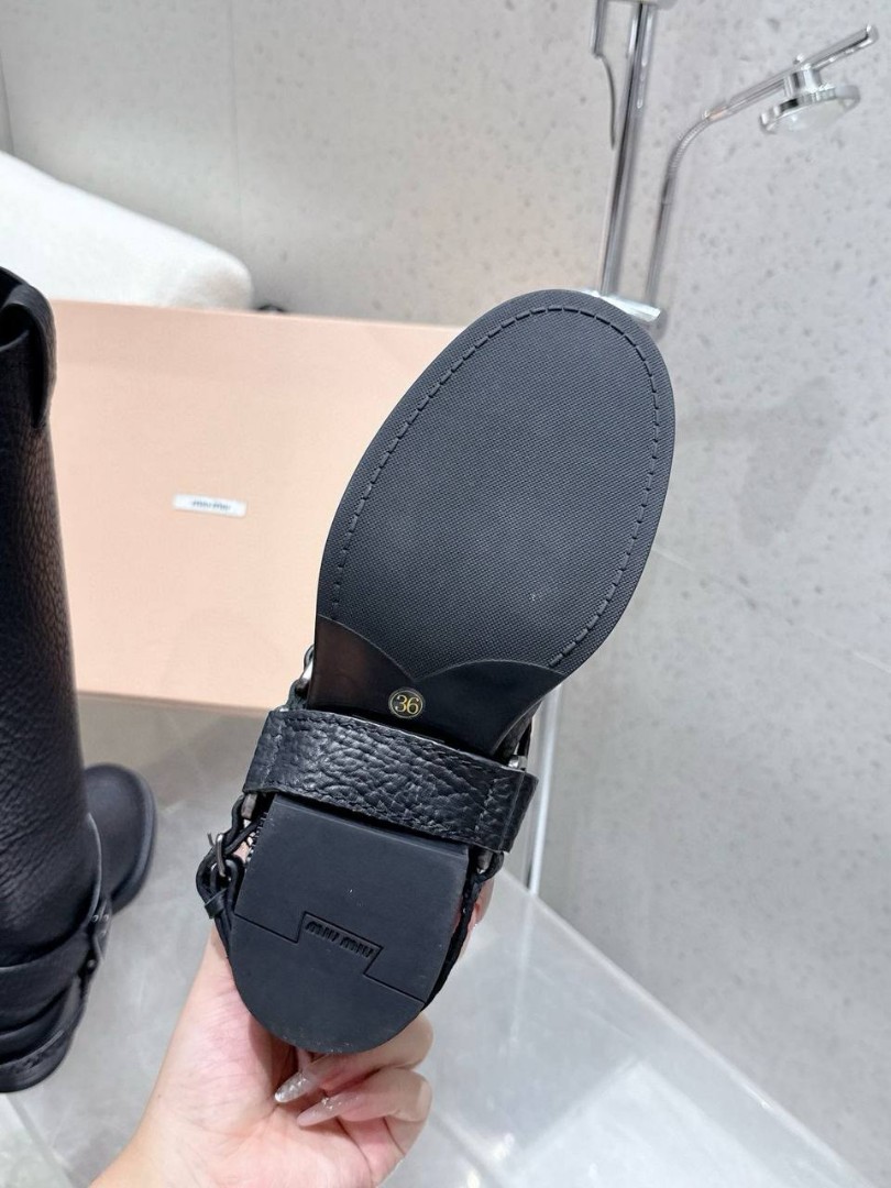 Женские кожаные сапоги Miu Miu черные с пряжками 2025