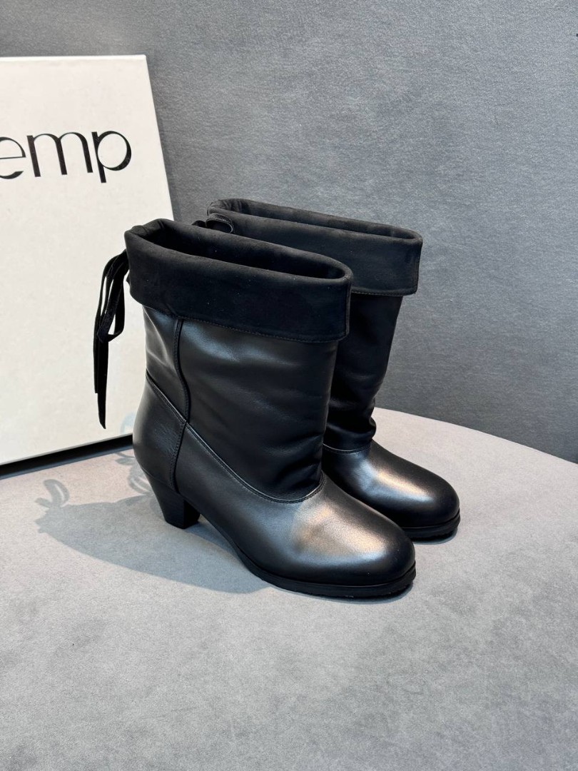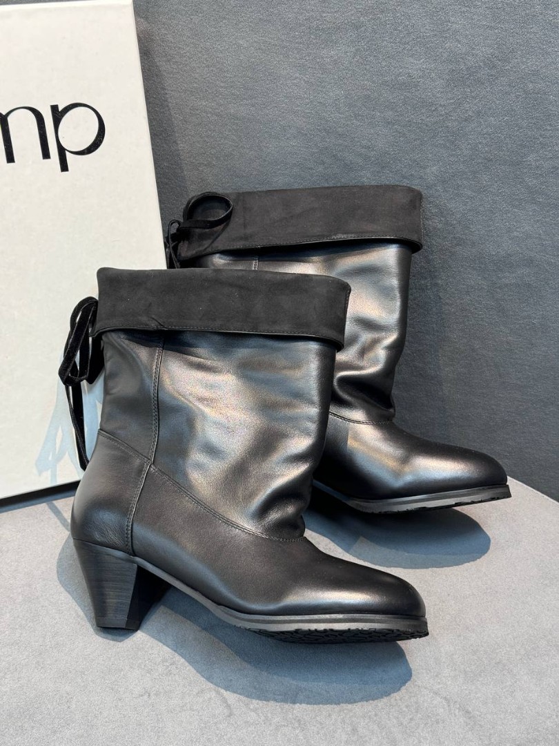Женские кожаные сапоги на каблуке Cotemp черные 2025