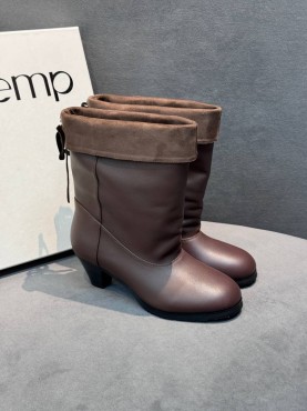 Женские кожаные сапоги на каблуке Cotemp коричневые 2025