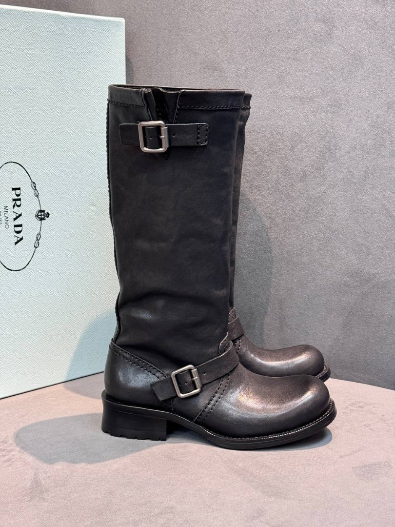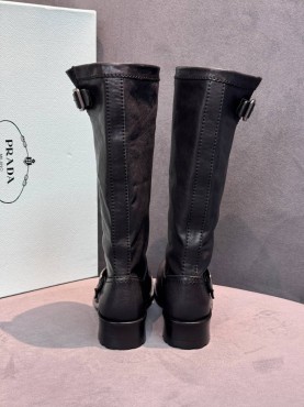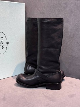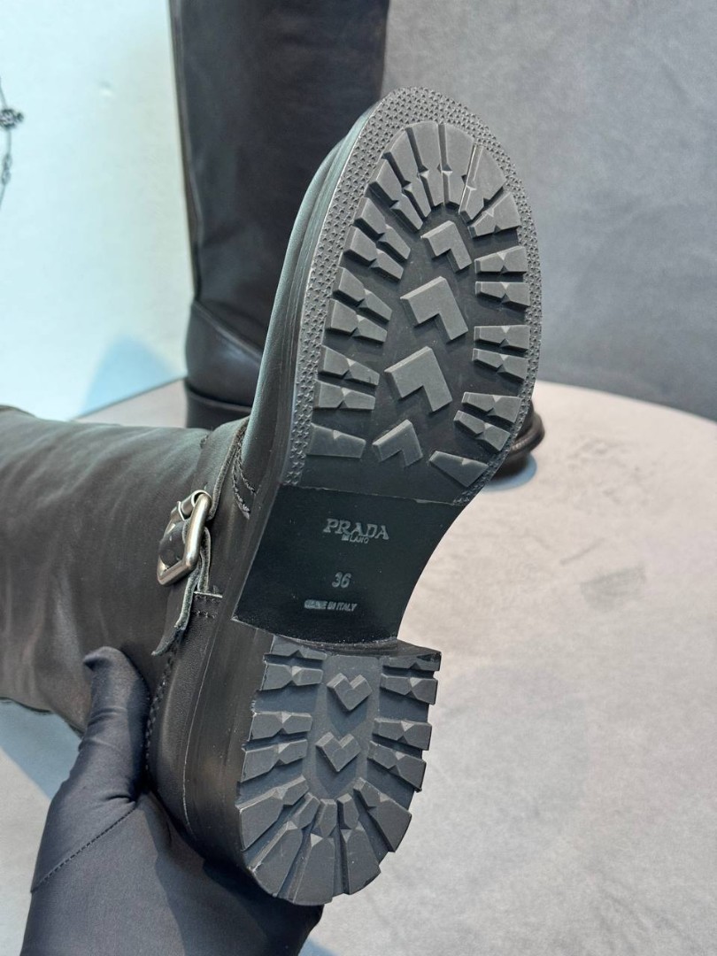 Женские кожаные сапоги Prada черные каблук 3,5 см 2025