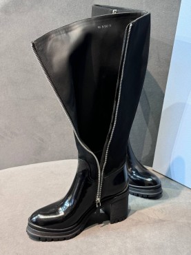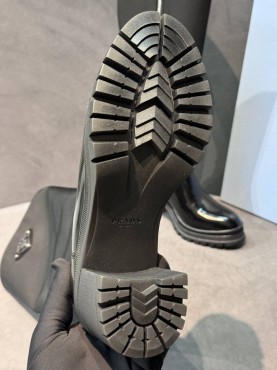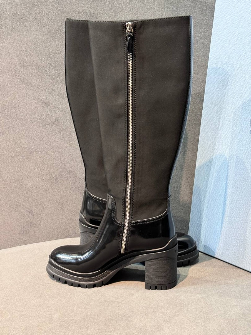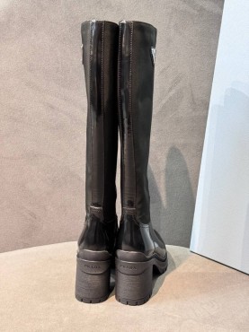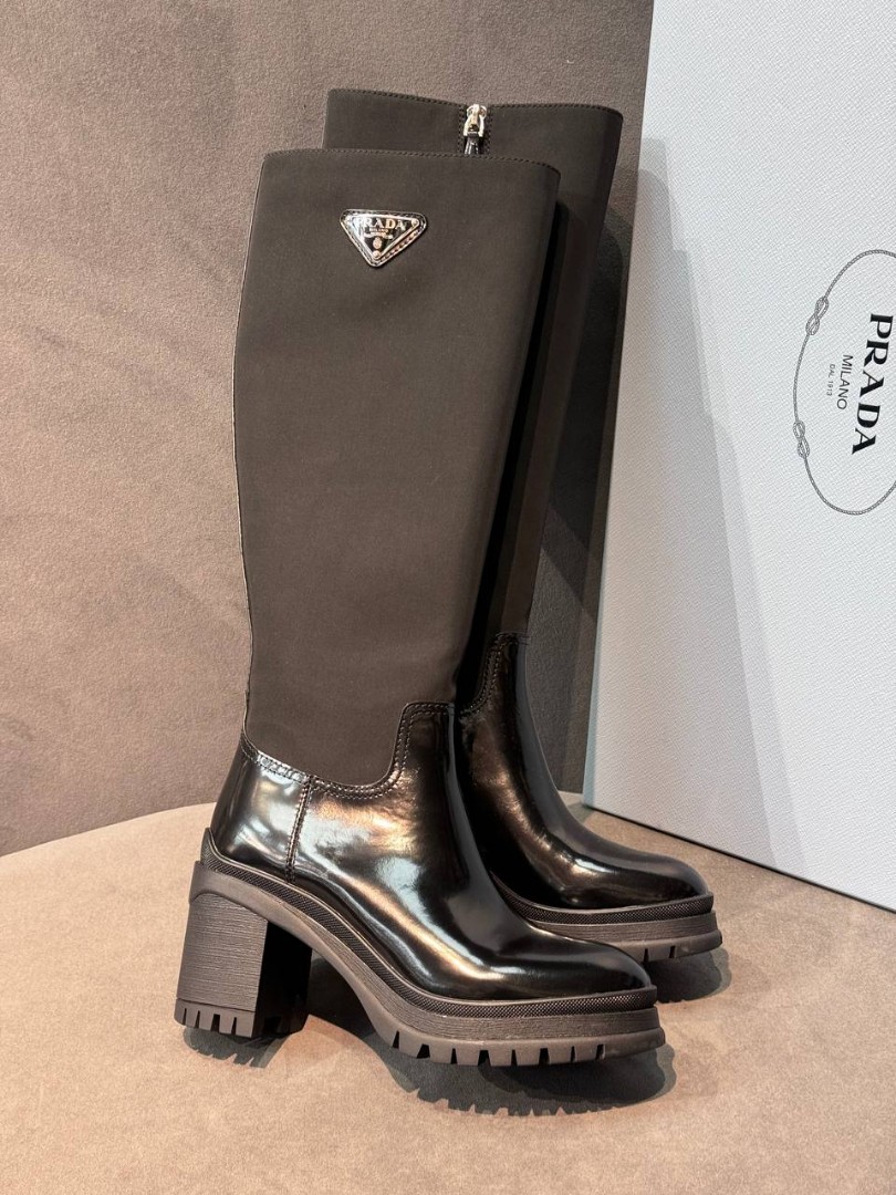 Женские кожаные сапоги Prada черные на каблуке 2025