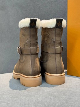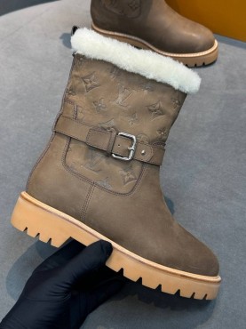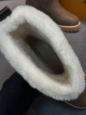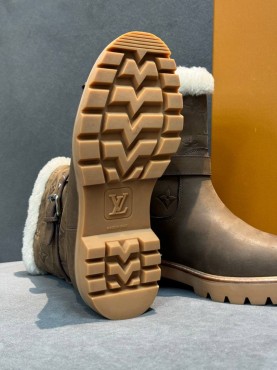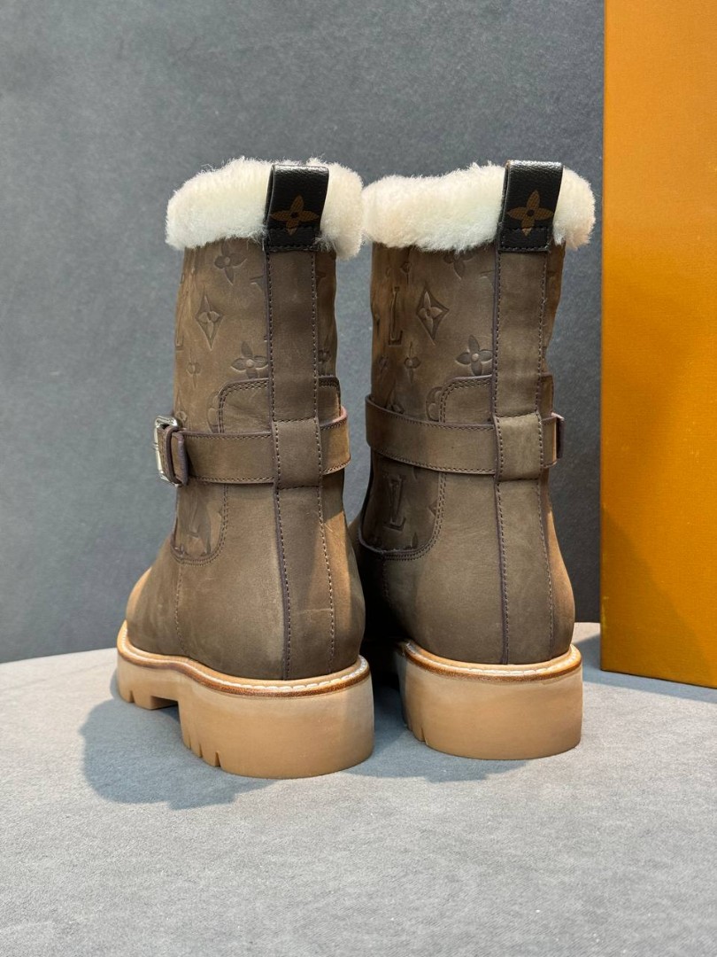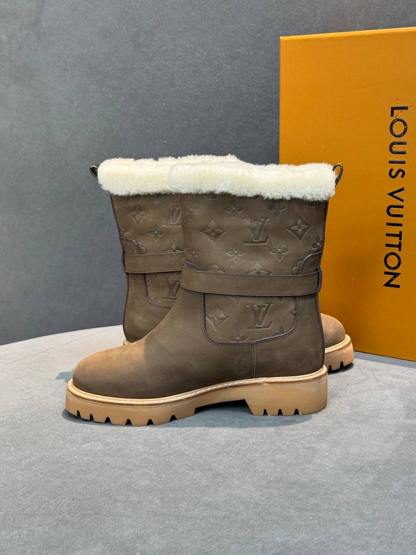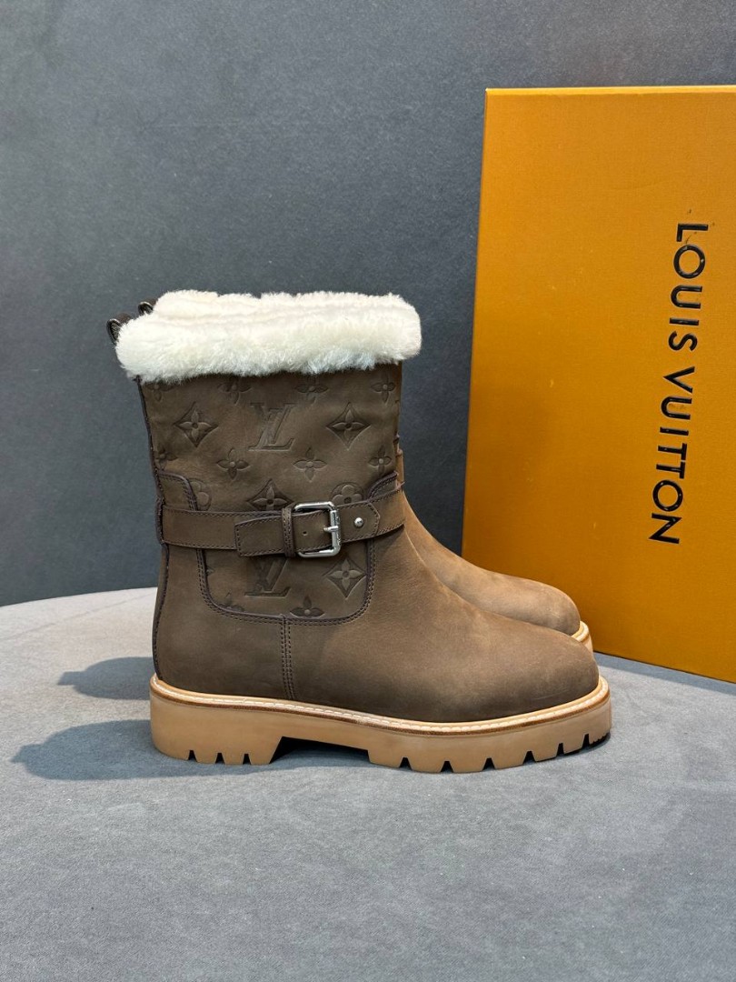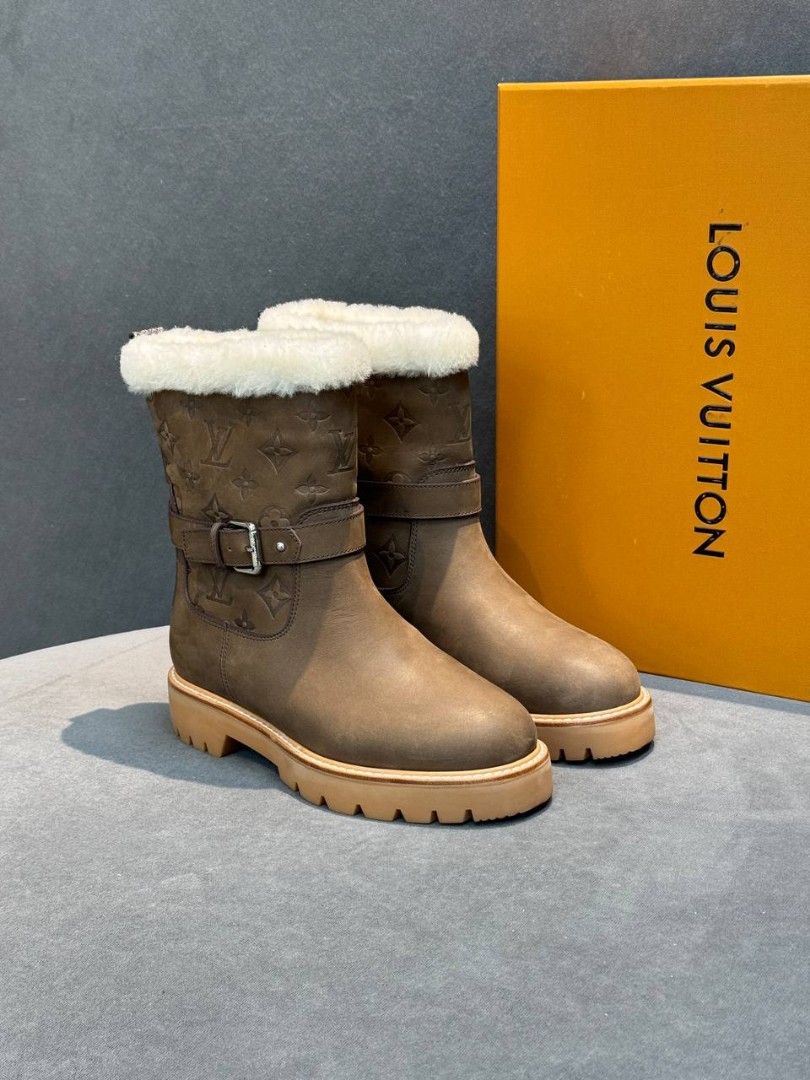 Женские кожаные сапоги с мехом Louis Vuitton коричневые с пряжкой 2026