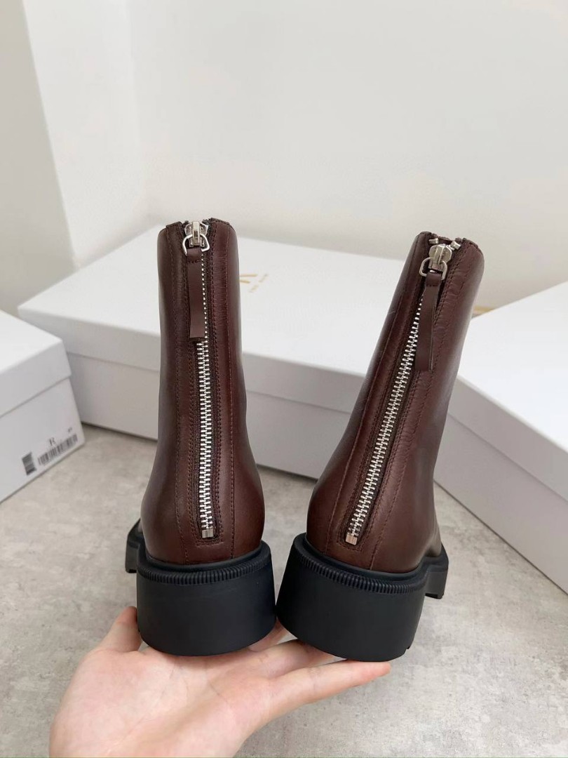 Женские кожаные укороченные сапоги The Row коричневые с молнией сзади 2025