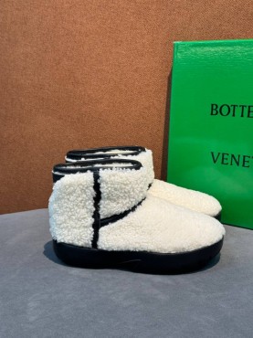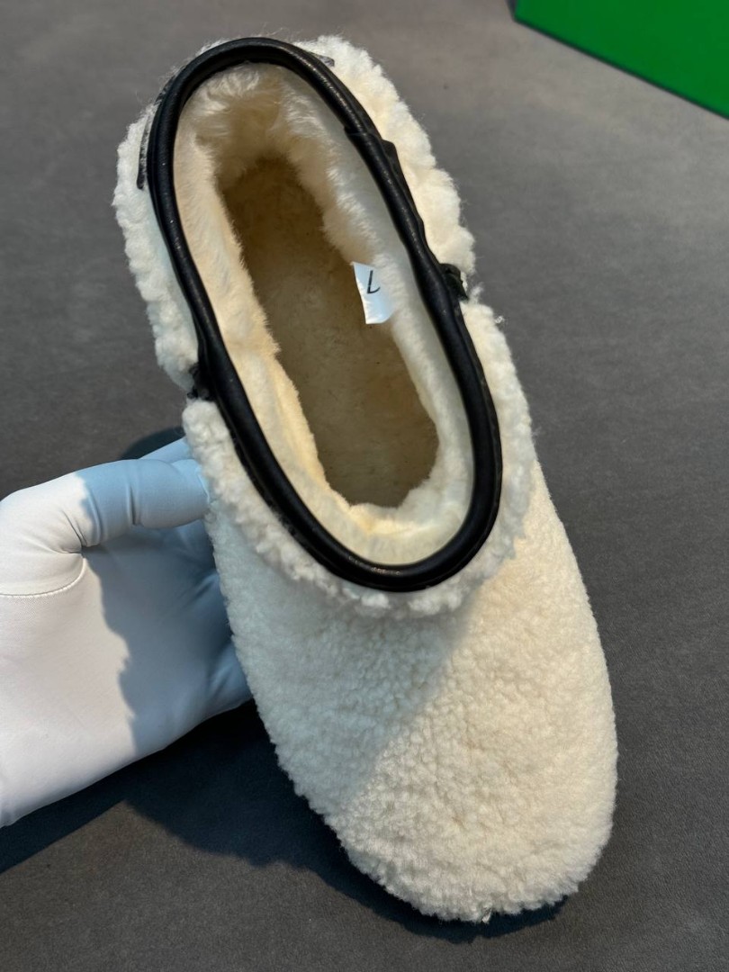 Женские меховые укороченные сапоги угги Bottega Veneta белые 2026