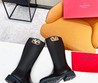 Женские сапоги высокие Valentino 2022 кожаные черные гладкие