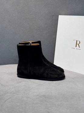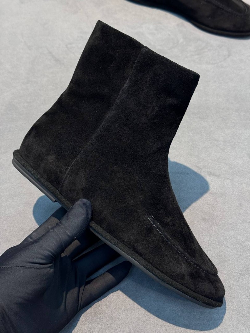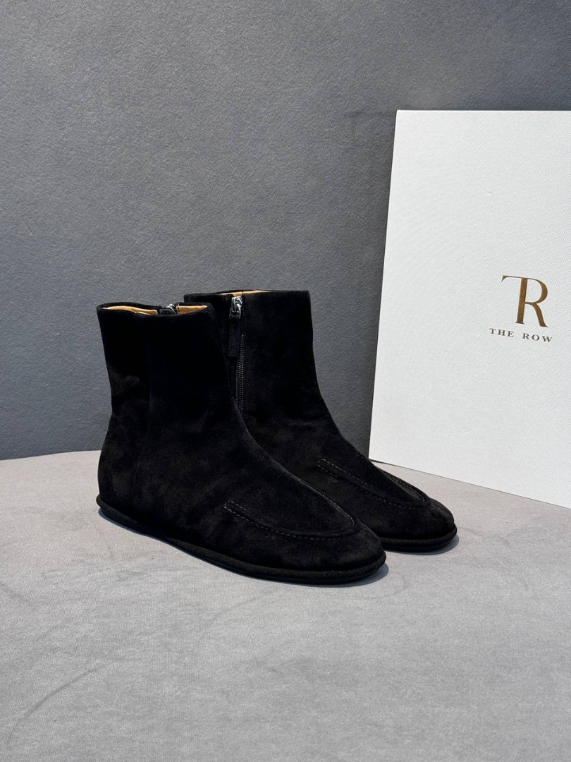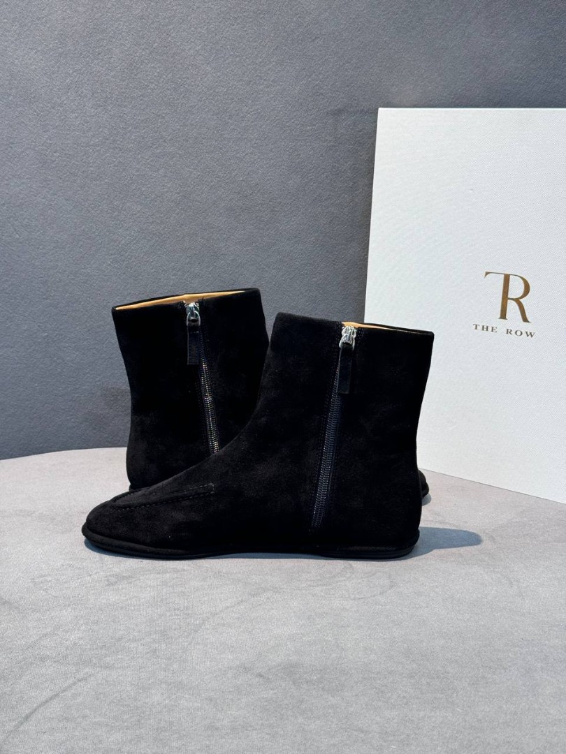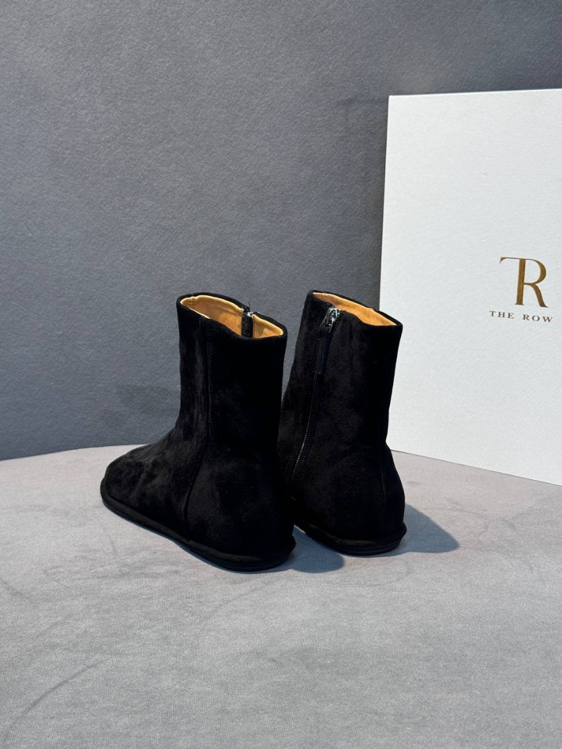Женские укороченные замшевые сапоги The Row черные 2025