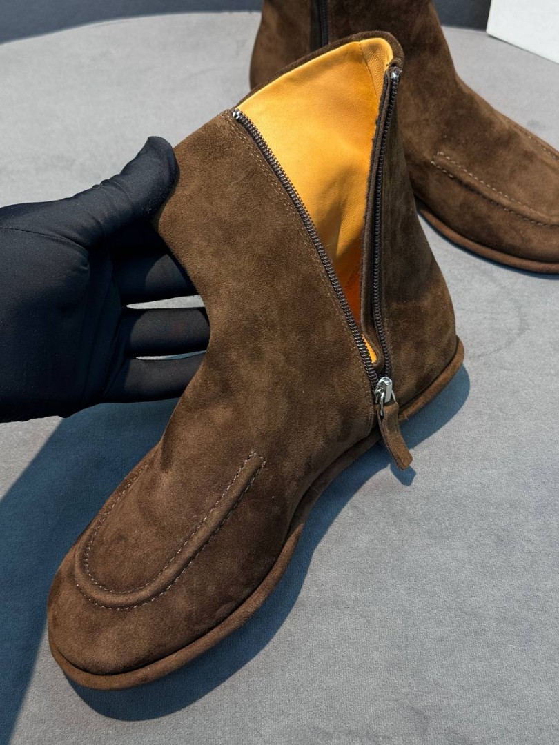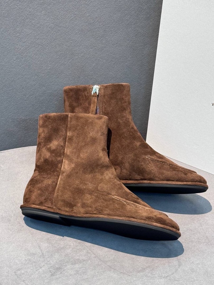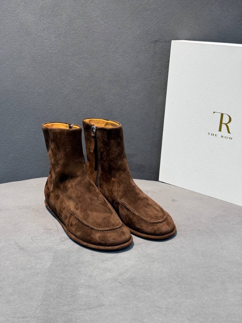 Женские укороченные замшевые сапоги The Row коричневые 2025