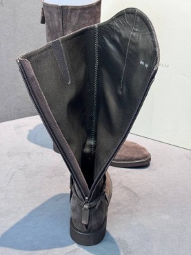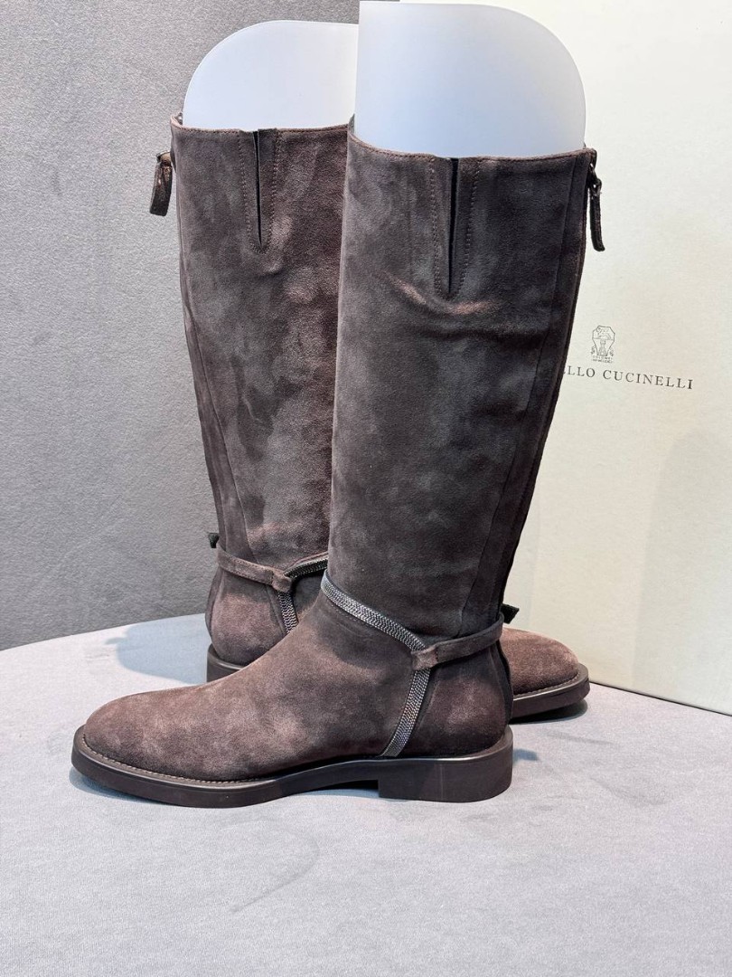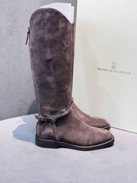 Женские замшевые сапоги Brunello Cucinelli коричневые с ремешком 2025