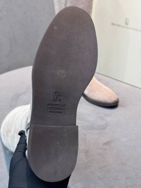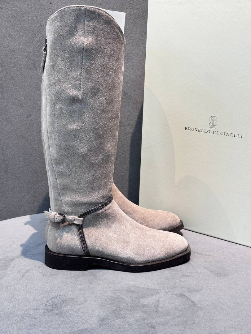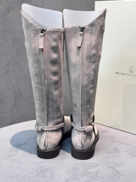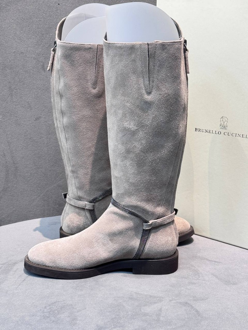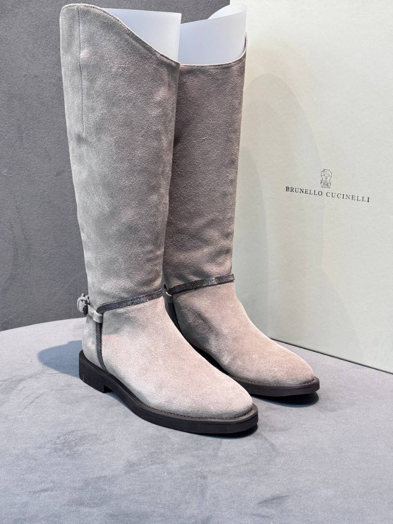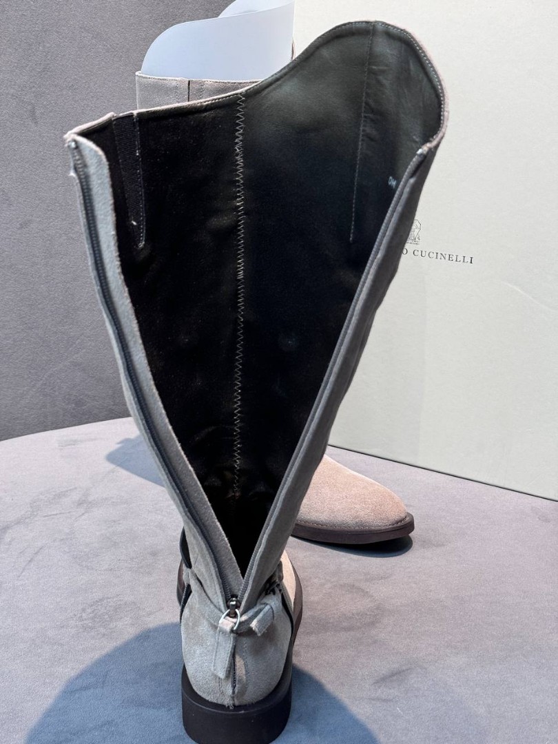 Женские замшевые сапоги Brunello Cucinelli серые с ремешком 2025