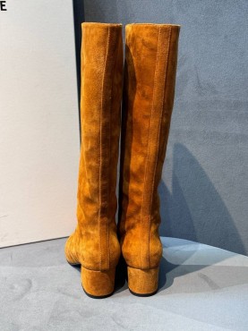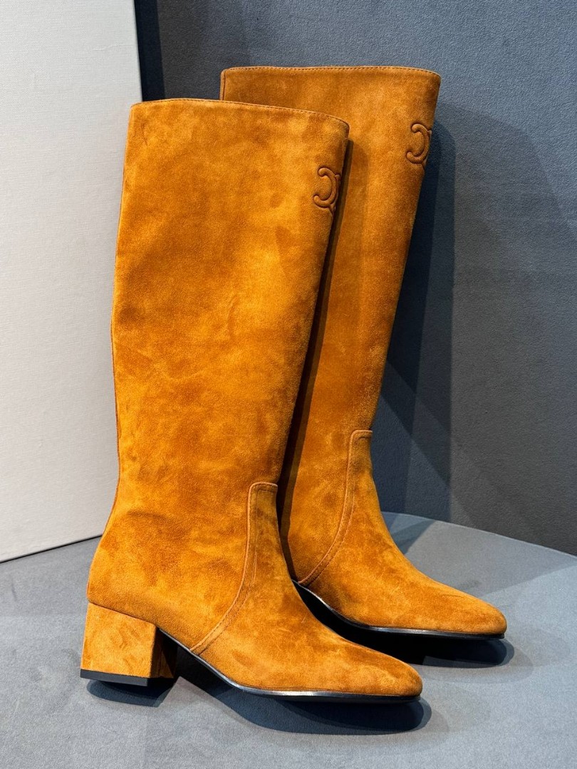 Женские замшевые сапоги Celine коричневые каблук 5 см 2025