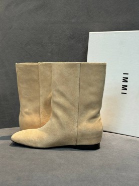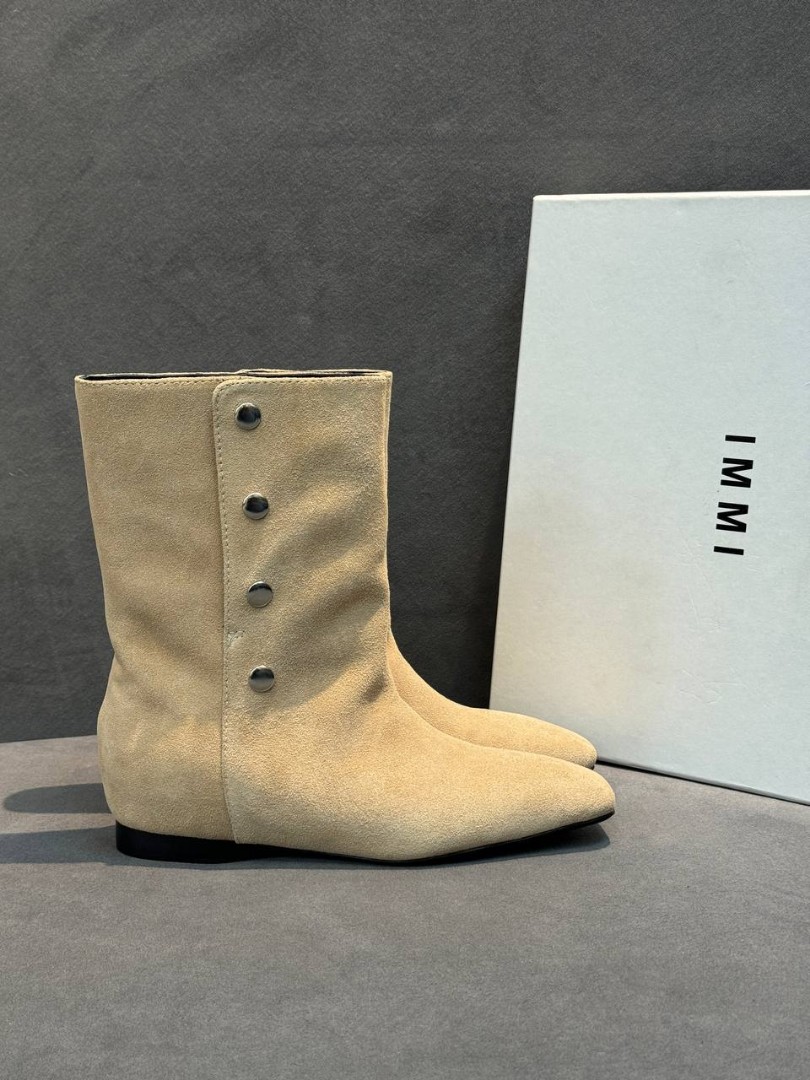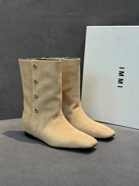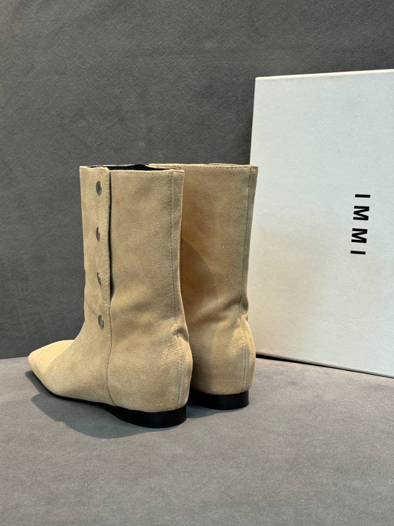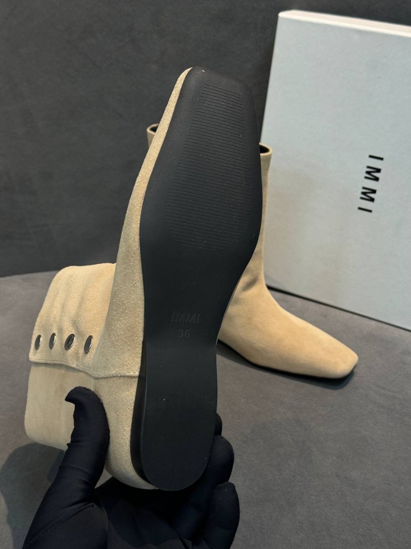 Женские замшевые сапоги Immi бежевые на кнопках 2025