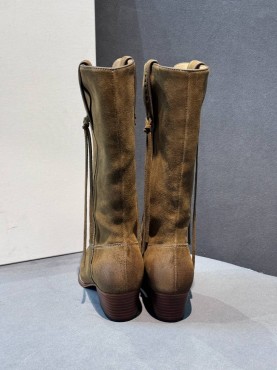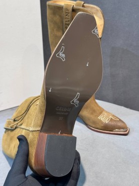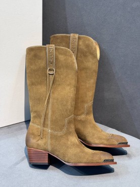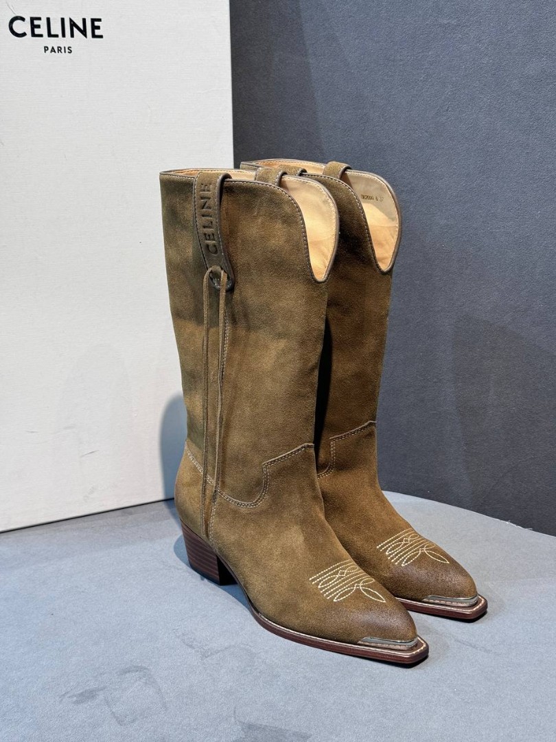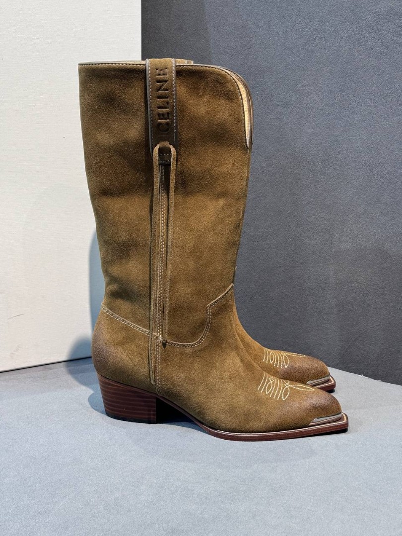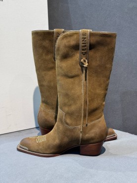 Женские замшевые сапоги казаки Celine коричневые каблук 5 см 2025