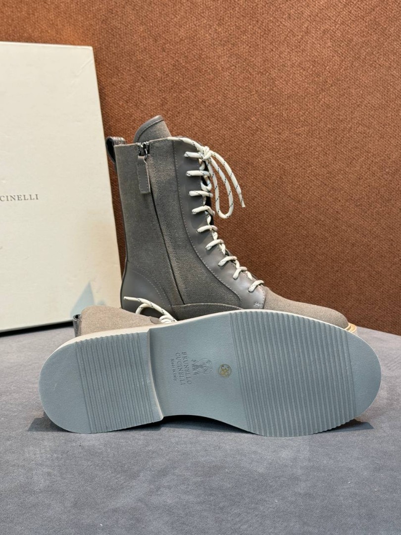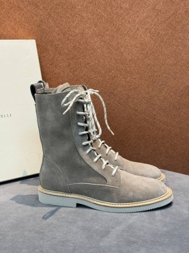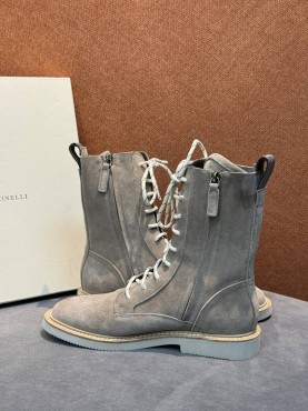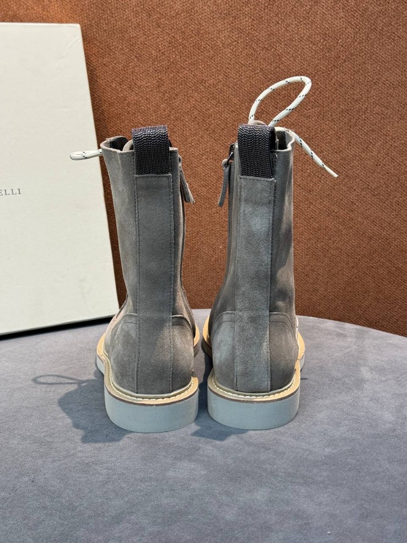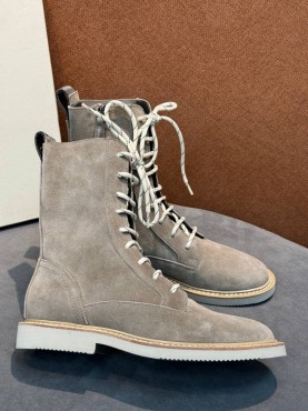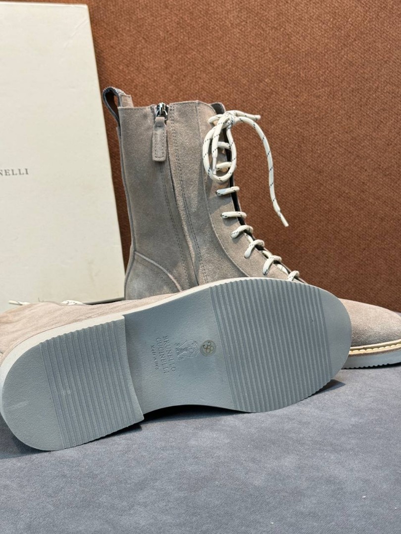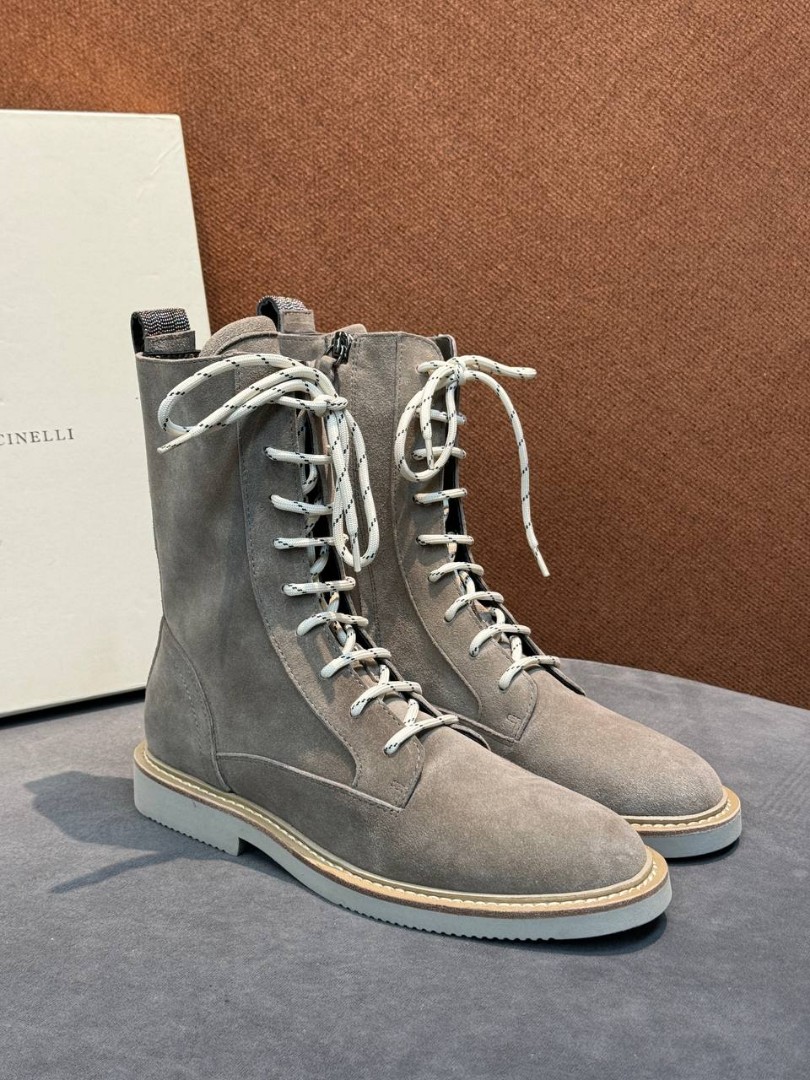 Женские замшевые сапоги со шнурками Brunello Cucinelli серые 2025