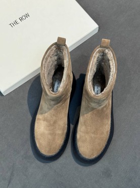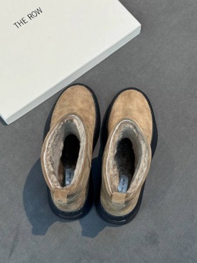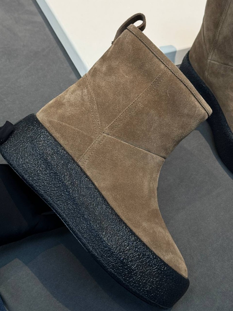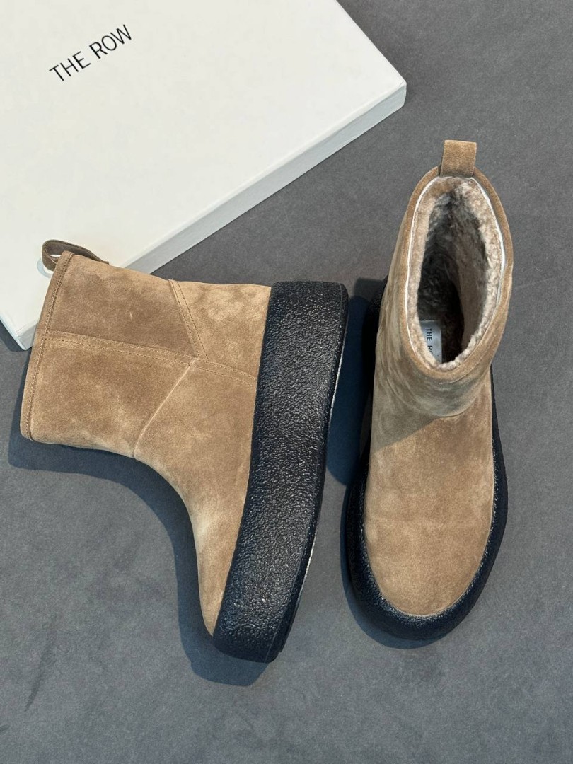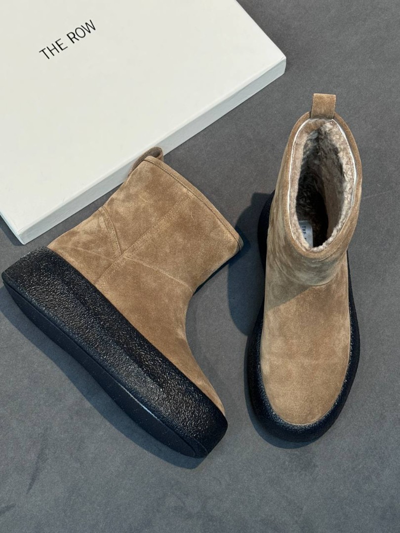 Женские замшевые укороченные сапоги The Row бежевые на платформе 6 см 2025