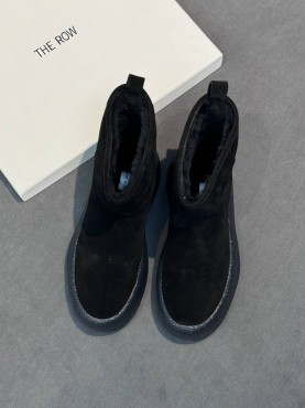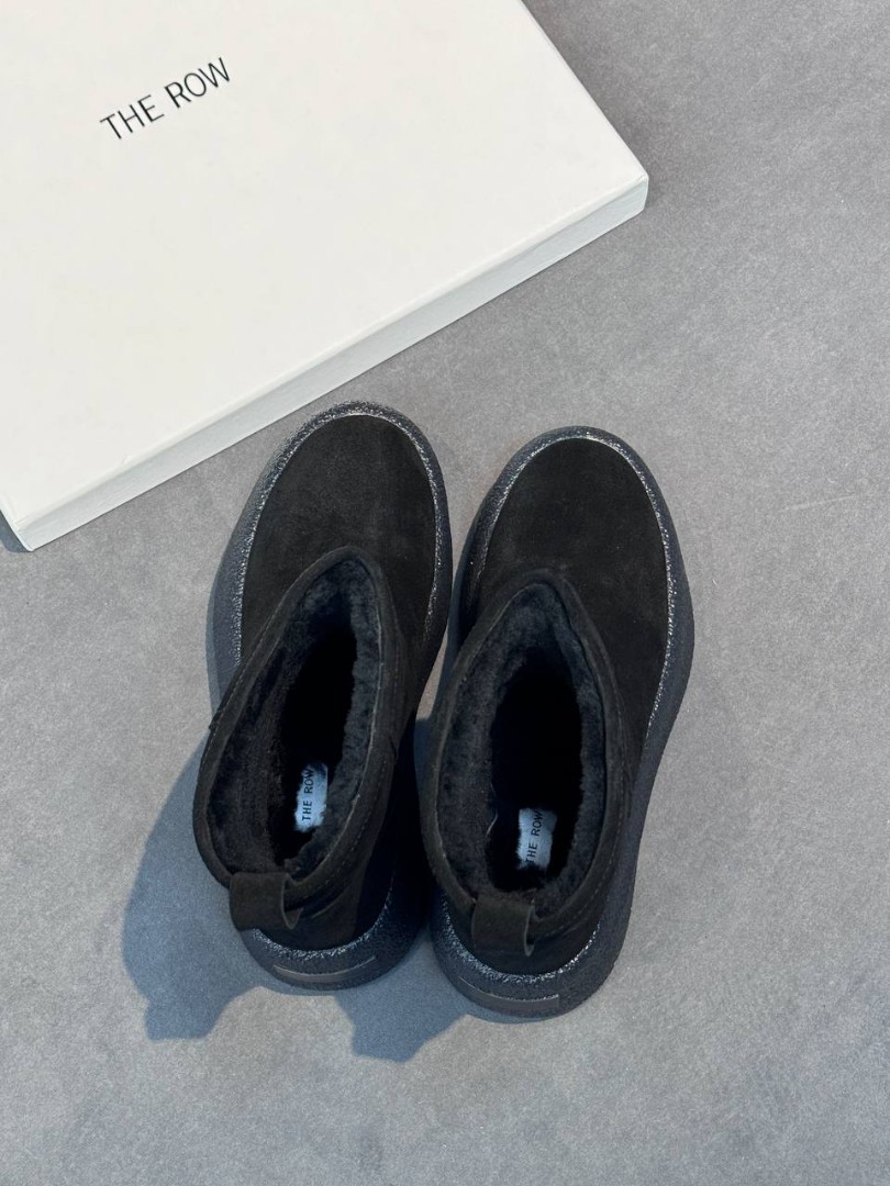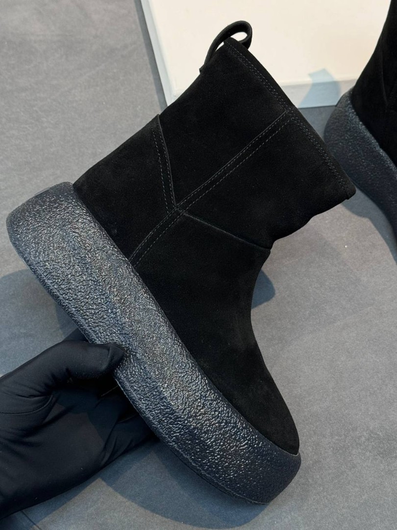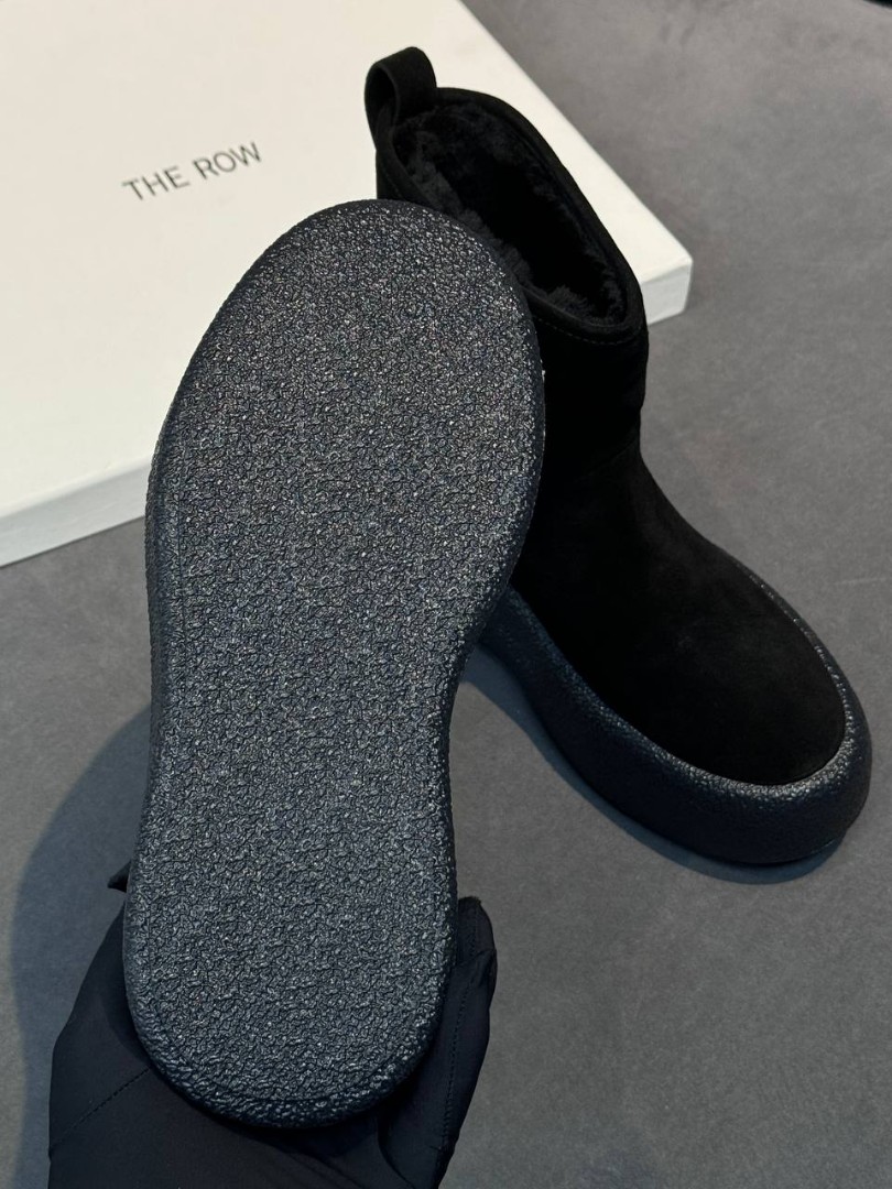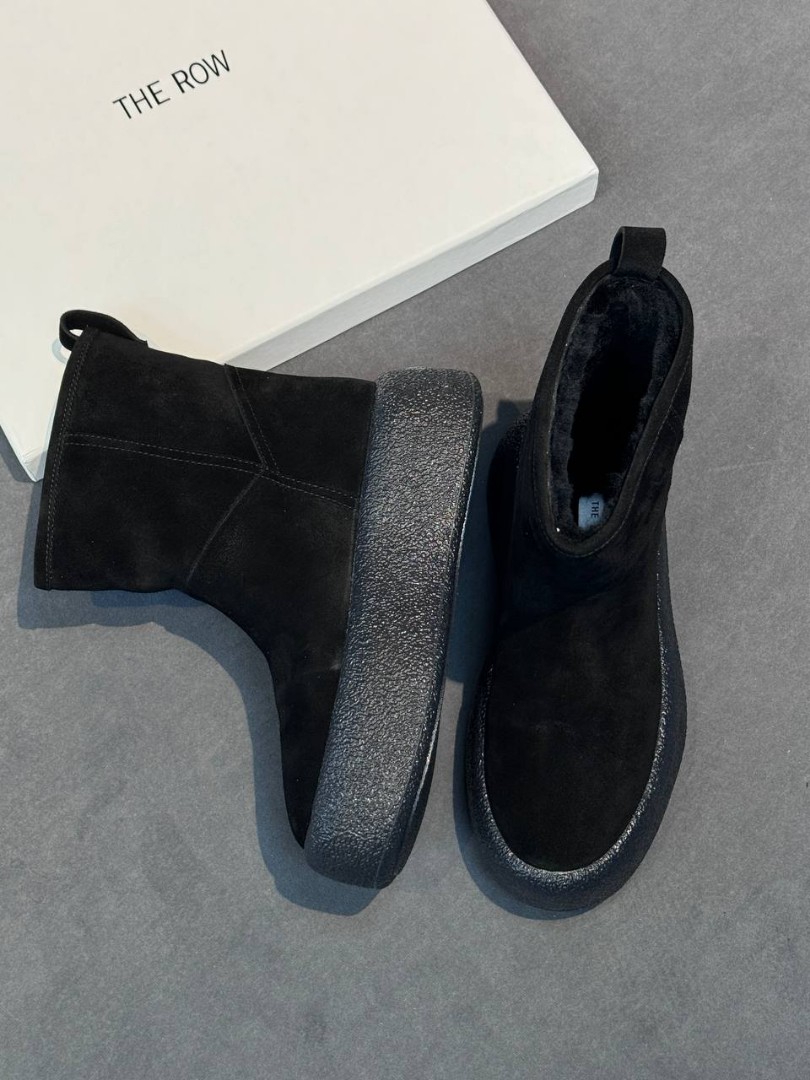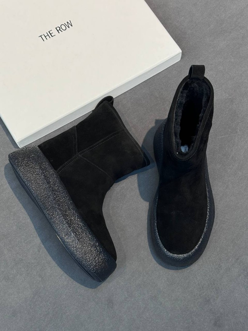 Женские замшевые укороченные сапоги The Row черные на платформе 6 см 2025