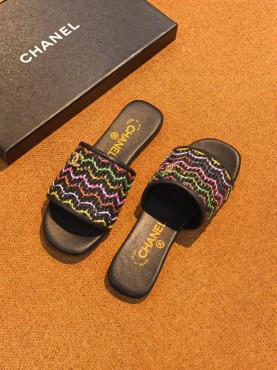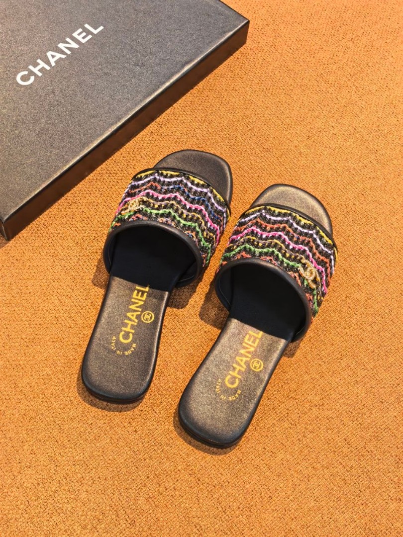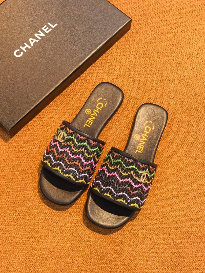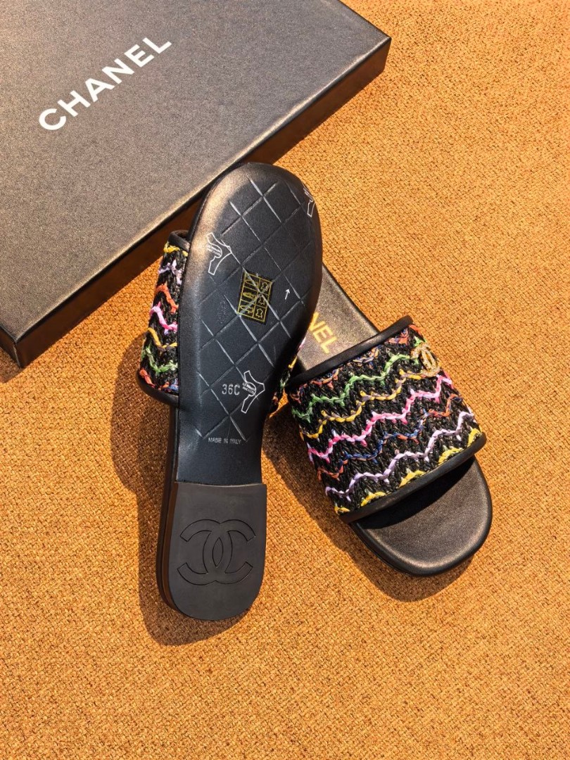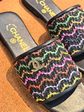Женские кожаные шлепанцы Chanel черные с разноцветным плетением 2026