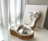 Женские кожаные шлепанцы Prada 2023-2024 серебристые