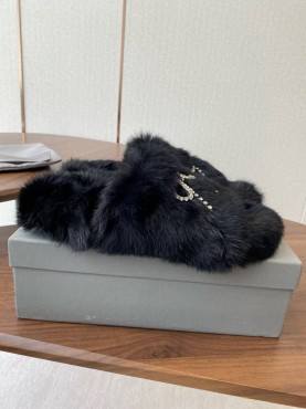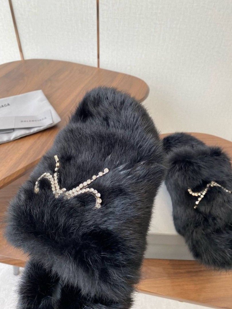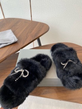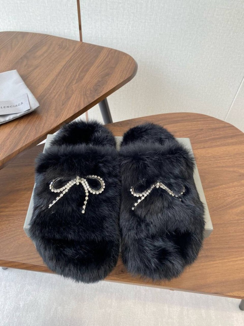 Женские меховые шлепанцы Balenciaga черные с бантом из страз 2025