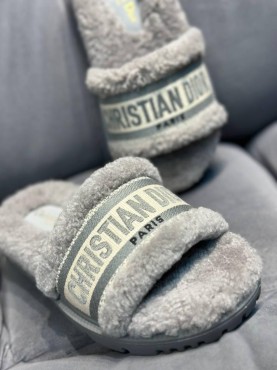 Женские меховые шлепки Christian Dior 2024 серые