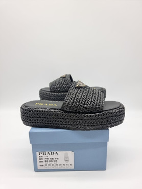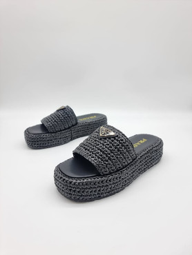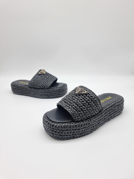 Женские плетеные шлепанцы Prada 2023-2024 черные