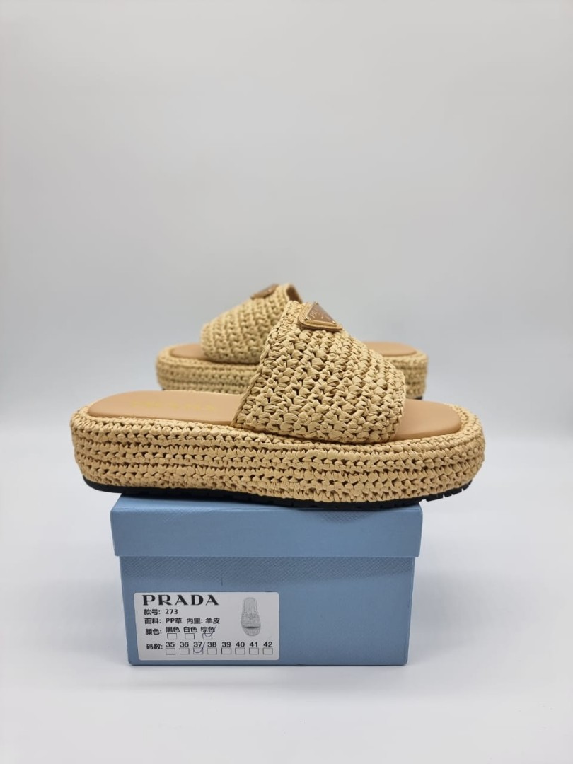 Женские плетеные шлепанцы Prada 2023-2024 светло-коричневые