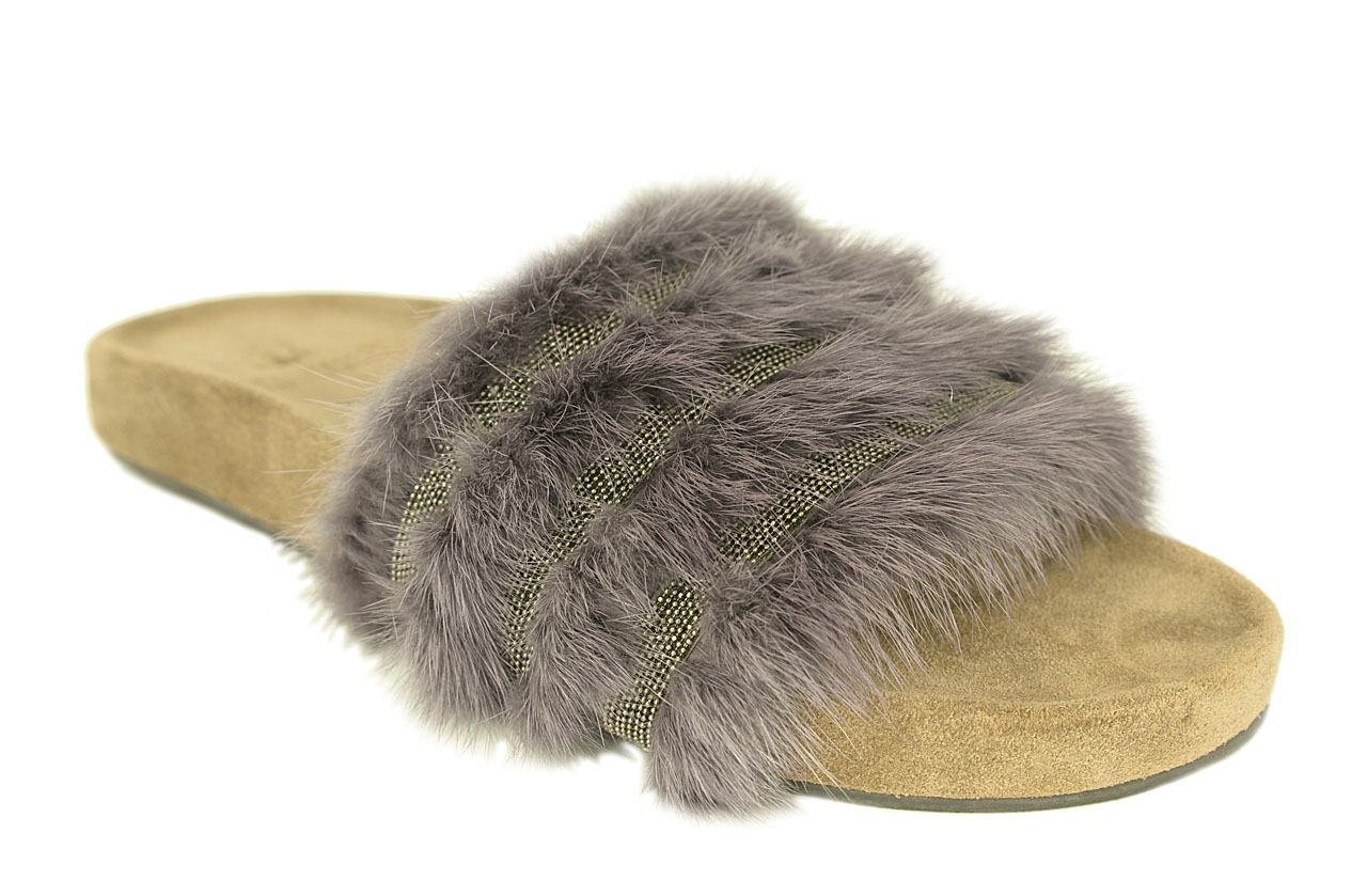 Женские шлепанцы Brunello Cucinelli с мехом