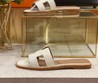 Женские шлепки Hermes белые рельефные с коричневой стелькой