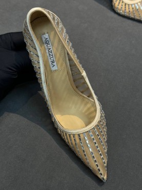Женские комбинированные туфли лодочки Aquazzura Firenze бежевые со стразами 2026