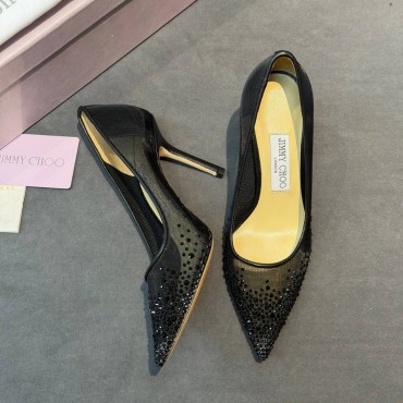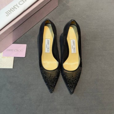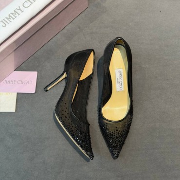 Женские комбинированные туфли лодочки Jimmi Choo черные со стразами каблук 8,5 см 2026