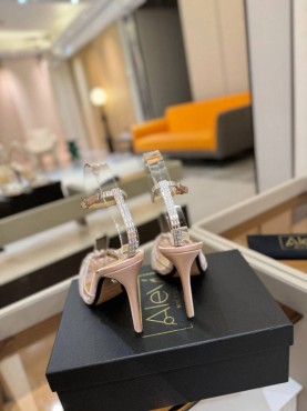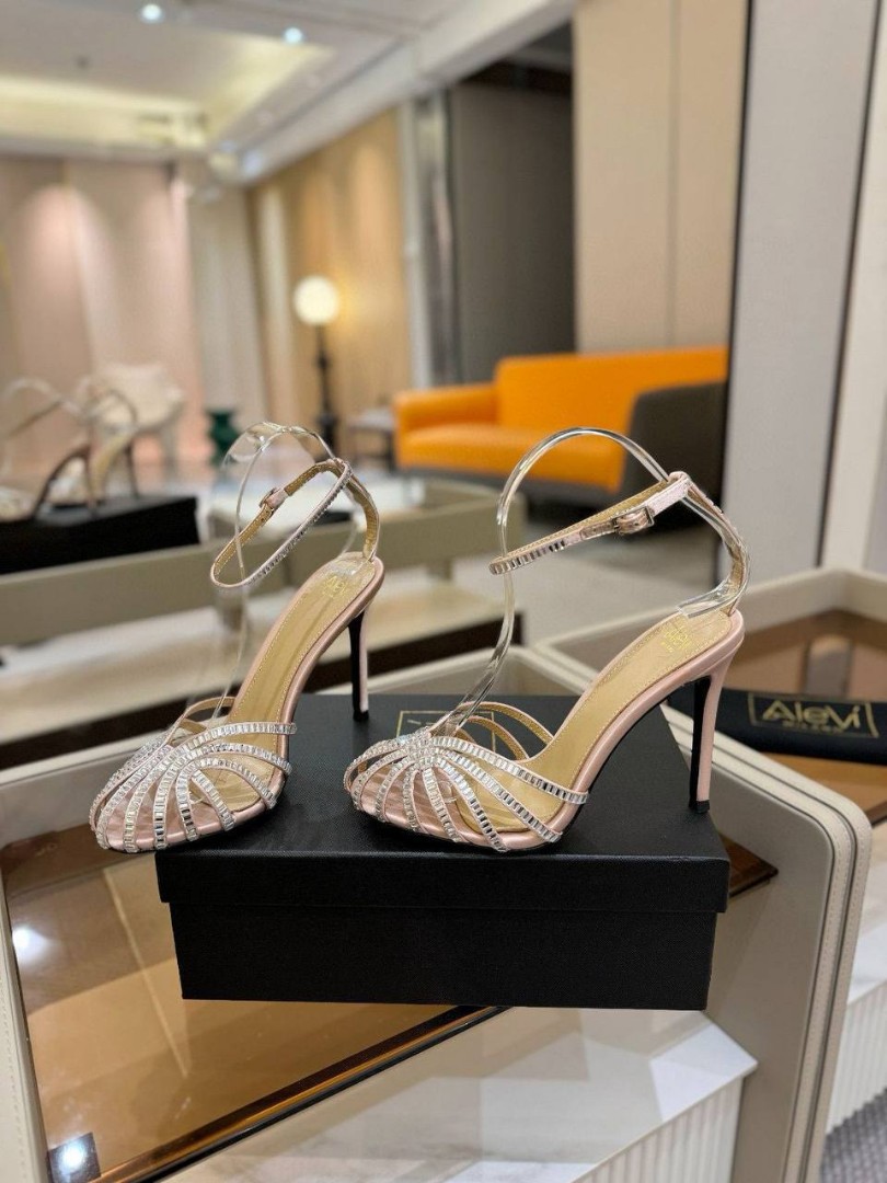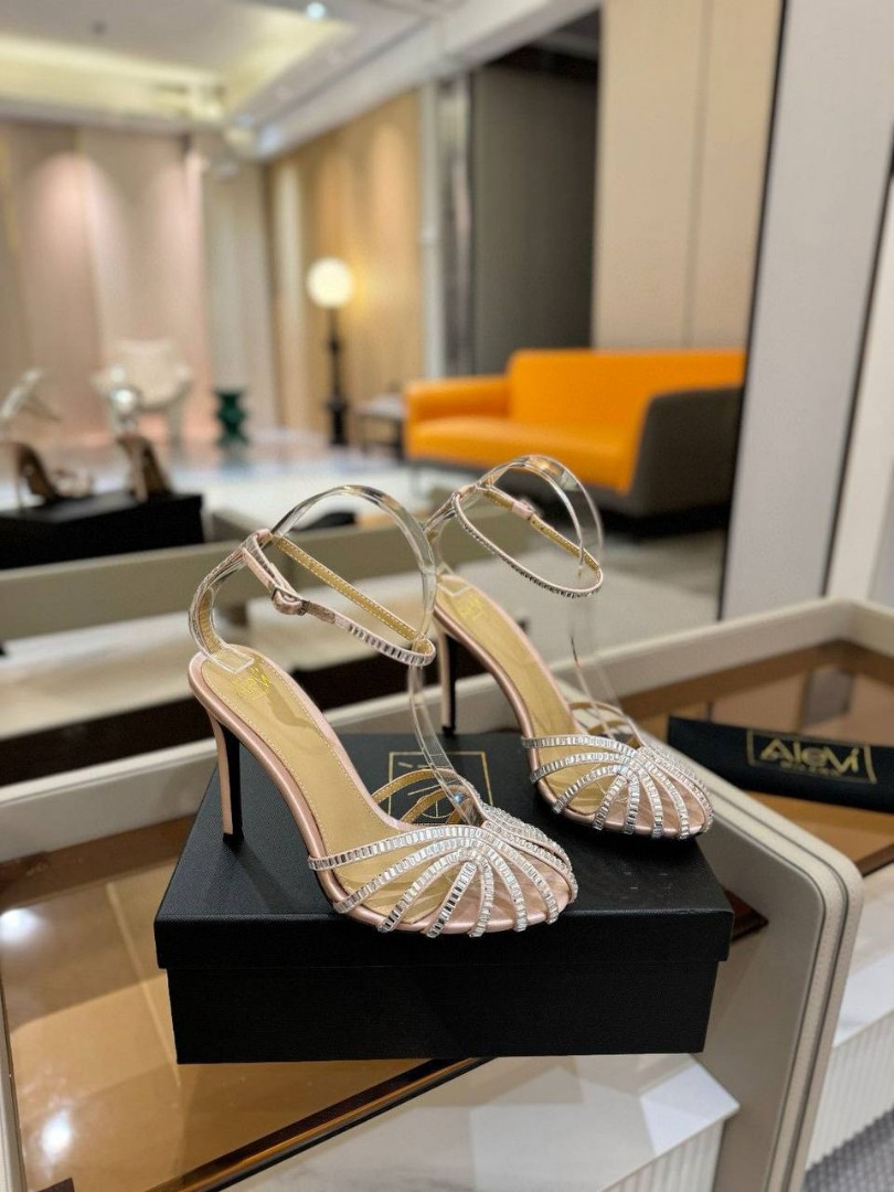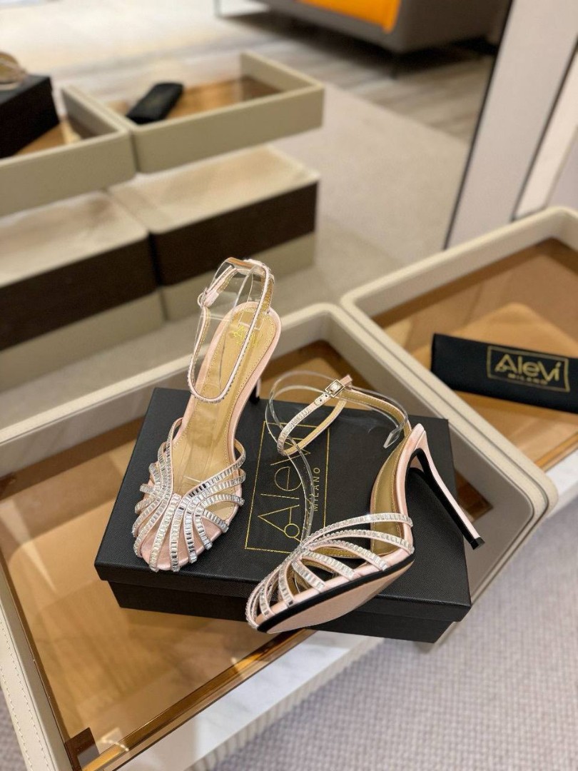 Женские кожаные туфли Alevi Milano розовые в стразах каблук 10,5 см 2025