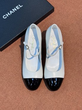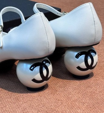 Женские кожаные туфли Chanel белые с круглым каблуком 6 см 2025