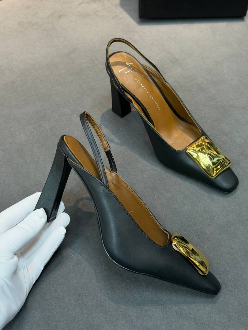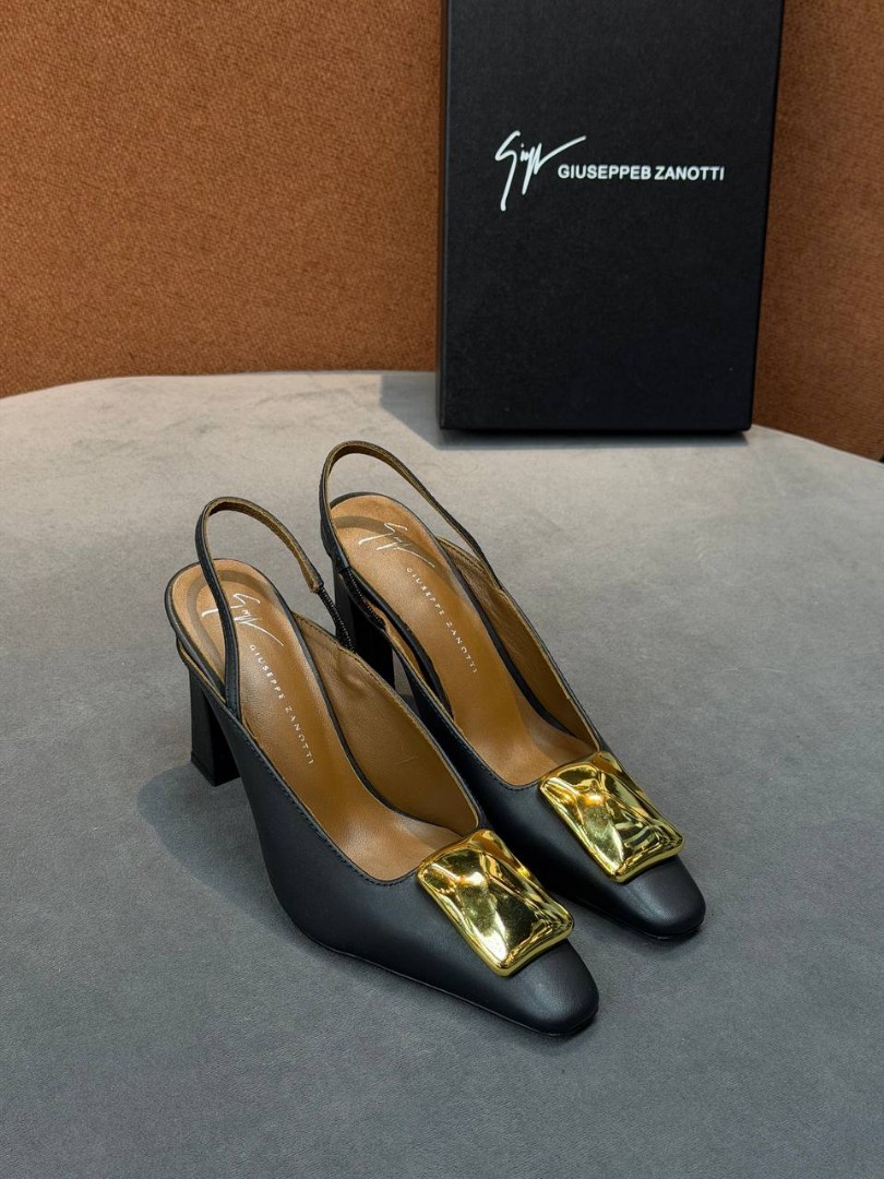 Женские кожаные туфли Giuseppe Zanotti черные с золотой пряжкой каблук 8,5 см 2026