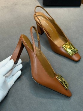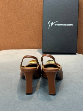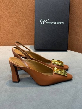 Женские кожаные туфли Giuseppe Zanotti коричневые с золотой пряжкой каблук 8,5 см 2026