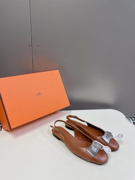Женские кожаные туфли Hermes коричневые с пряжкой 2024