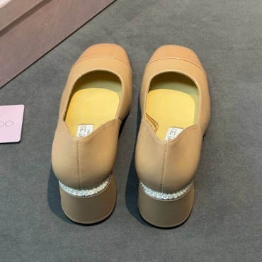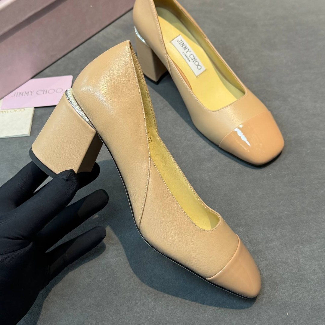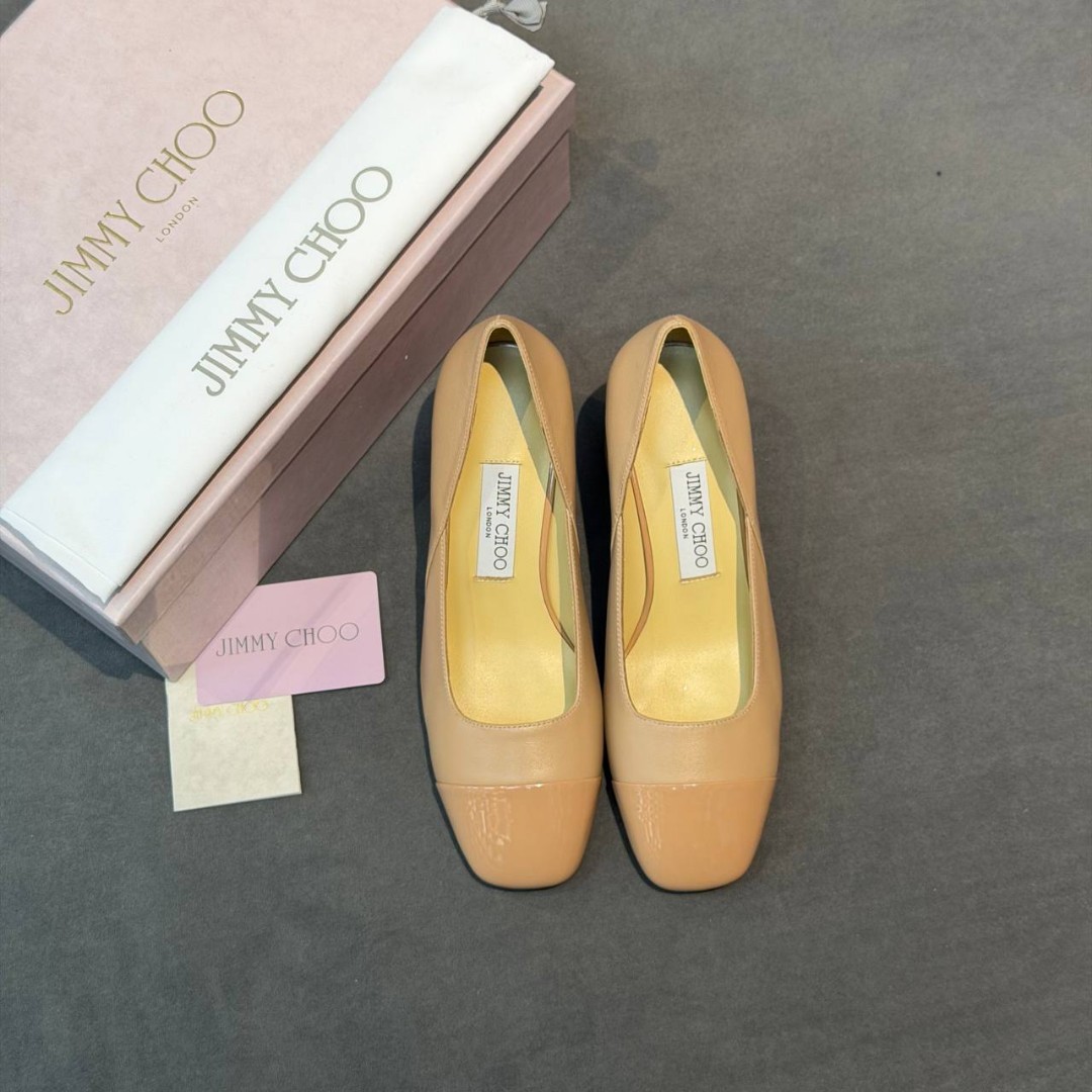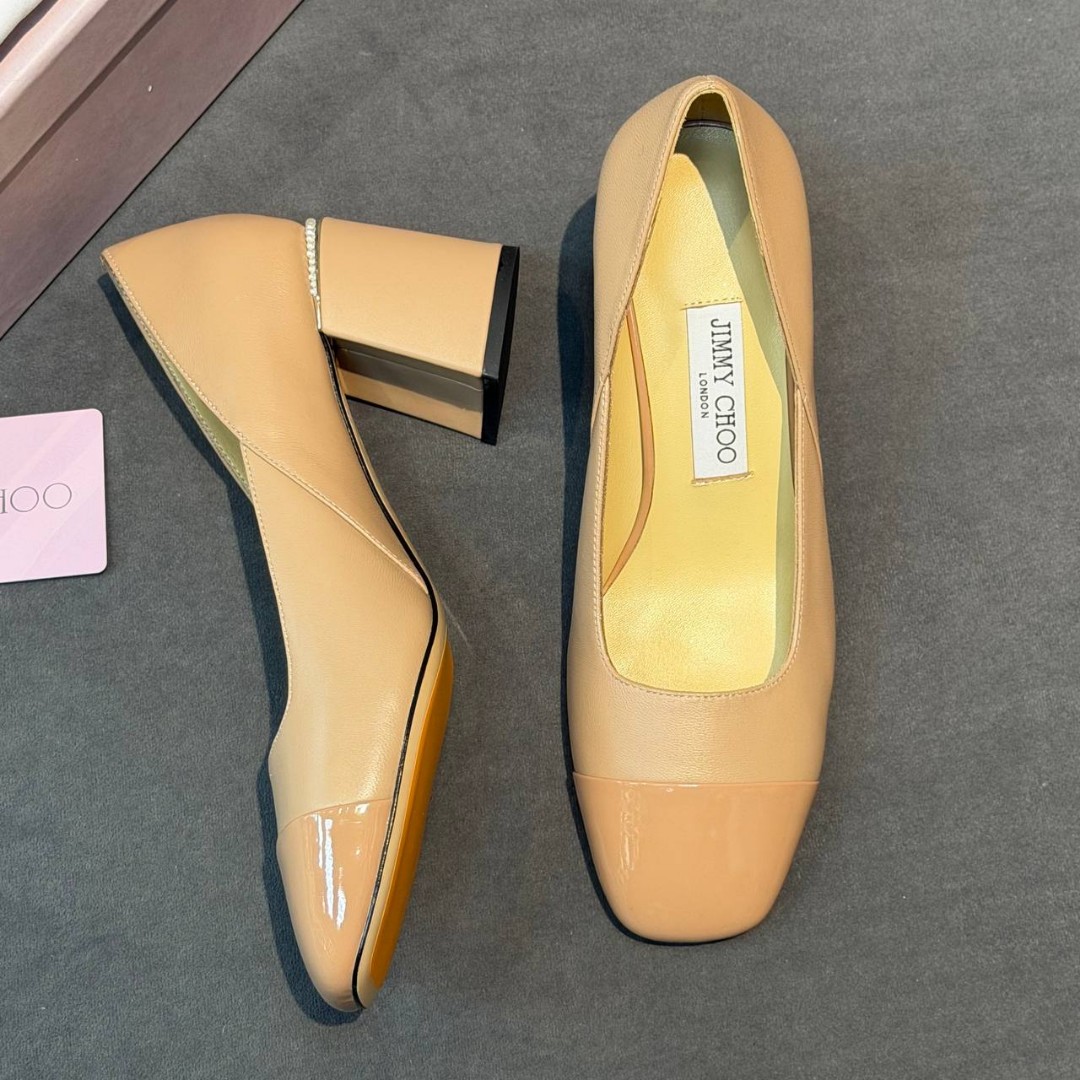 Женские кожаные туфли Jimmy Choo бежевые с лакированным носом каблук 6 см 2026