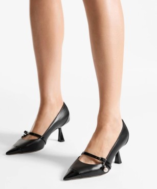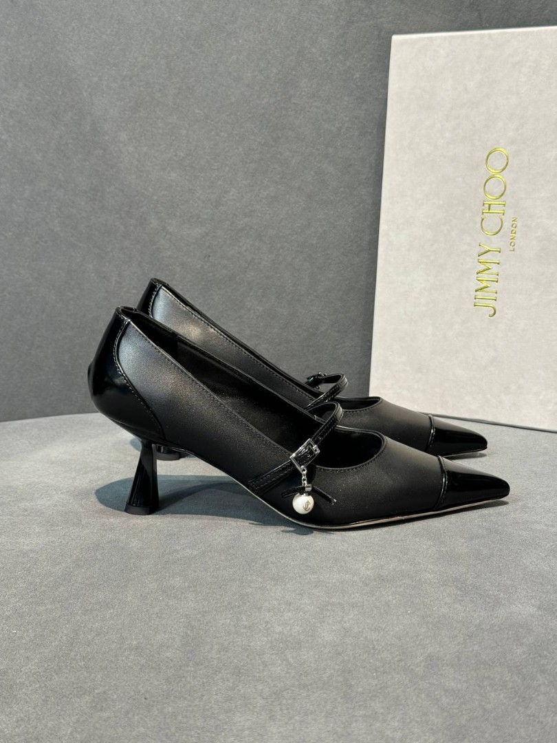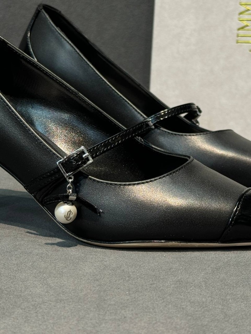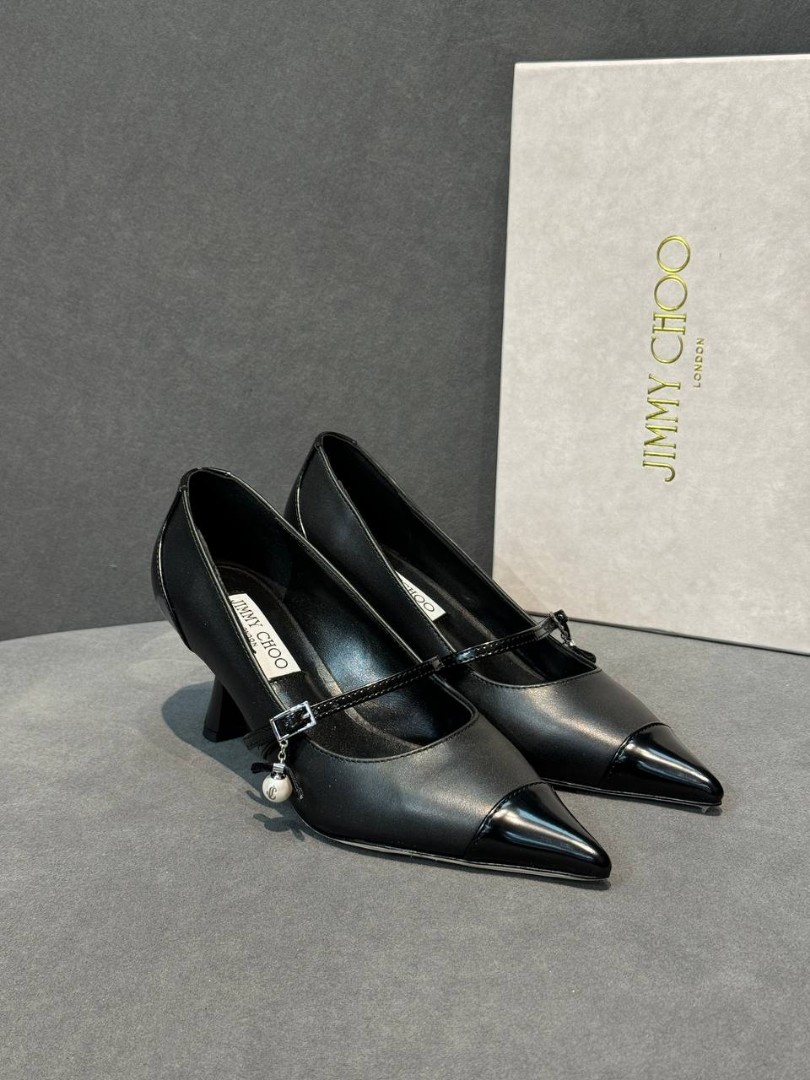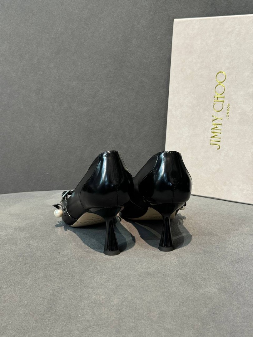 Женские кожаные туфли Jimmy Choo Black Panache черные с жемчужинами каблук 6,5 см 2025