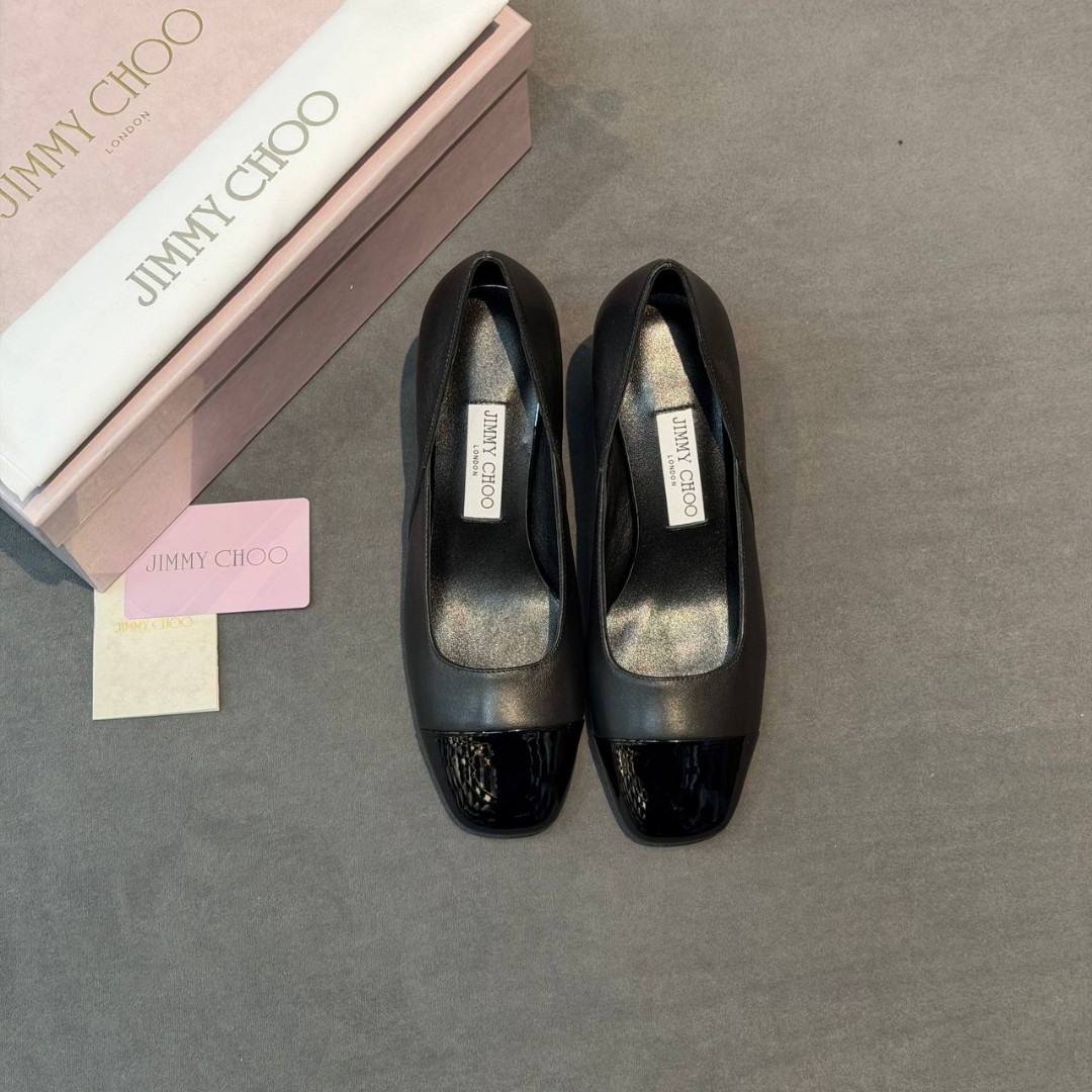 Женские кожаные туфли Jimmy Choo черные с лакированным носом каблук 6 см 2026